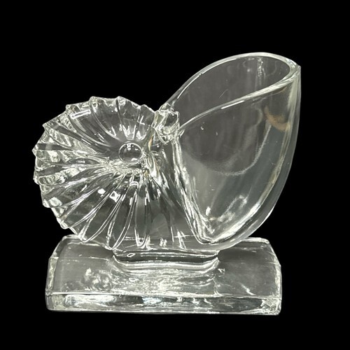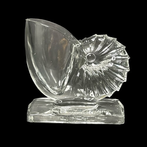 New Martinsville 1940's Clear Elegant Glass Nautilus Seashell Conch Vase Bookend