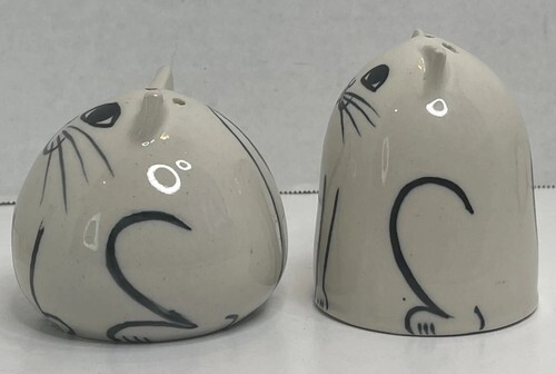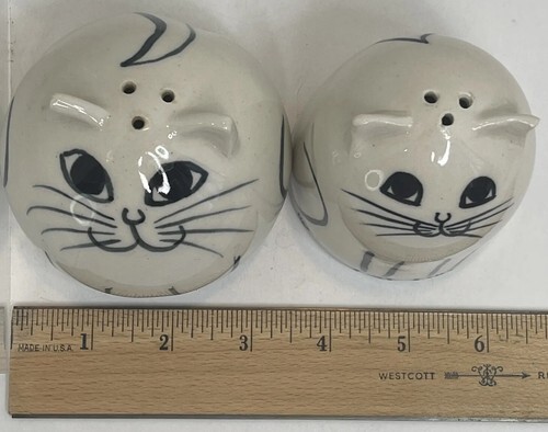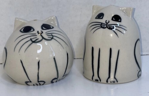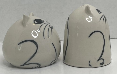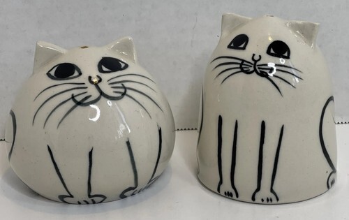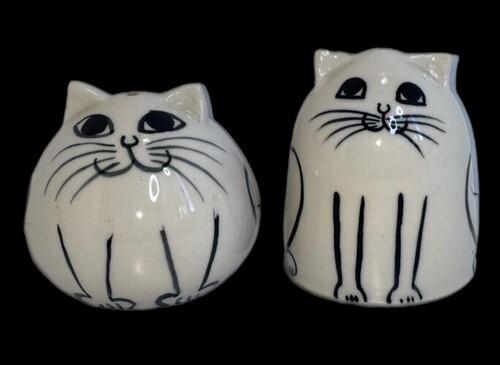 Stunning KD Karen Donleavy Black White Cat Painted Salt And Pepper Shakers.