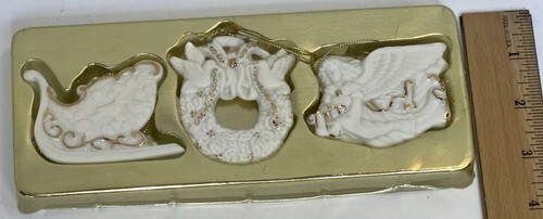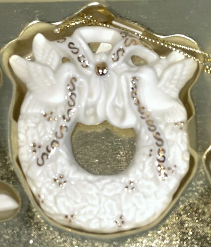 Avon Porcelain Christmas White Ornament Gift Set With 24 Karat Gold Accents.