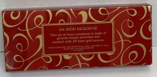 Avon Porcelain Christmas White Ornament Gift Set With 24 Karat Gold Accents