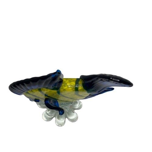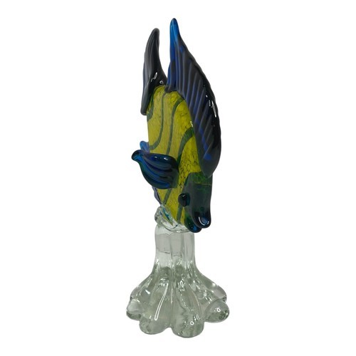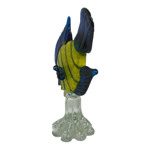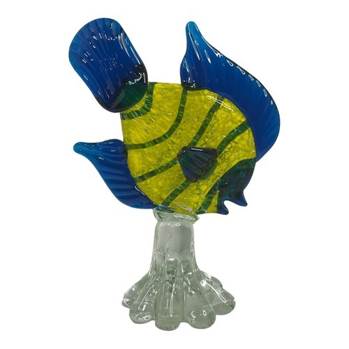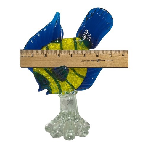 Vintage Confetti Hand Blown Art Glass Angel Fish Yellow Blue Green Tropical Sea