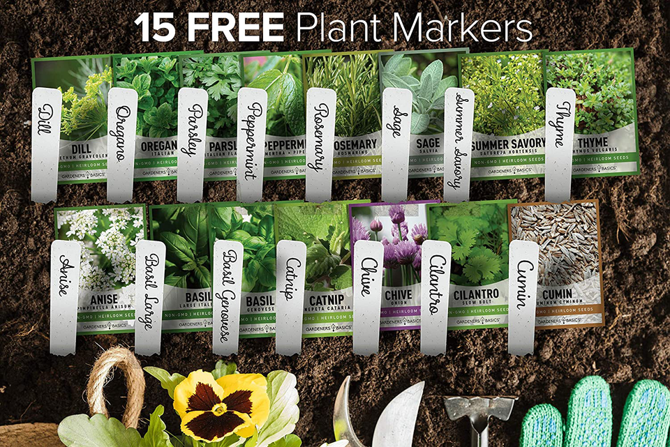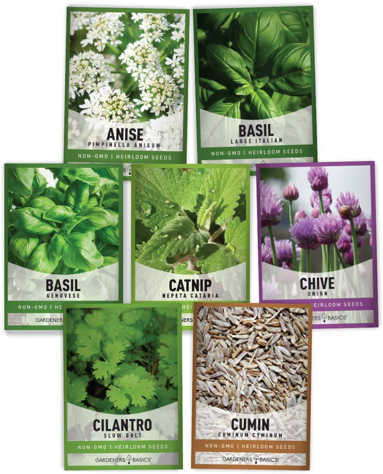 15 Herb Seeds For Planting Varieties Heirloom Non-GMO 5200+ Seeds Indoors, Hydroponics, Outdoors - Basil, Catnip, Chive, Cilantro, Oregano, Parsley, Peppermint, Rosemary and More By Gardeners Basics