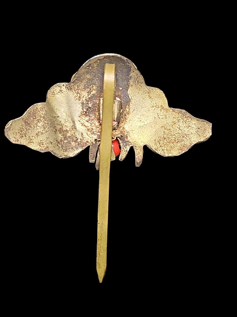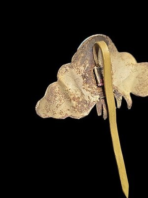 Condition is consistent with age and material. There is visible feather loss, edge wear, and surface variation, particularly along raised and openwork areas. These characteristics are typical and expected in genuine antique tian-tsui jewelry due to the fragile nature of kingfisher feather inlay. The structure remains sound and the piece presents with strong overall visual impact.