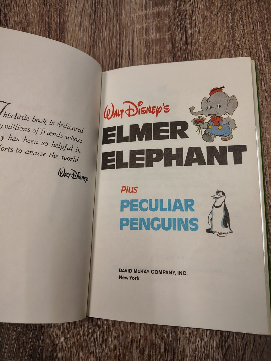 Vintage Walt Disney Elmer Elephant Peculiar Penguins David McKay Co 2-Story Book