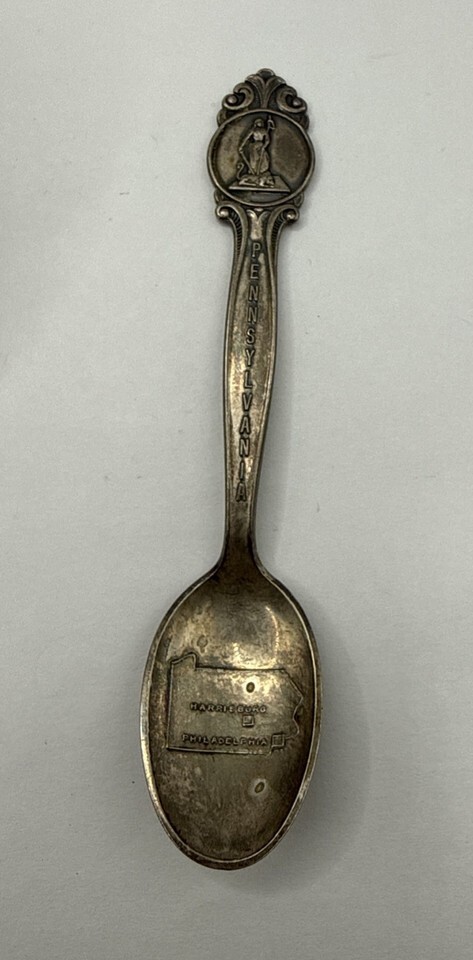 The TH. Marthinsen EPNS Norway "Viking" Souvenir Spoon is a collectible piece of silver craftsmanship from Scandinavia, specifically Norway. With a vintage dating back to 1900-1940, this 4-inch souvenir spoon features intricate designs Pennsylvania with callouts to Philly and Harrisburg. The TH. Marthinsen brand adds a touch of authenticity and quality to this decorative piece, making it a charming addition to any antique collection.