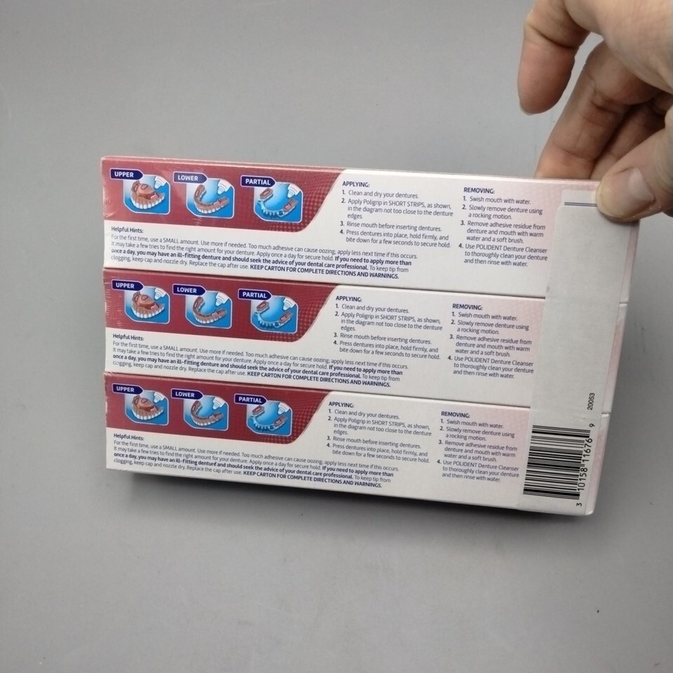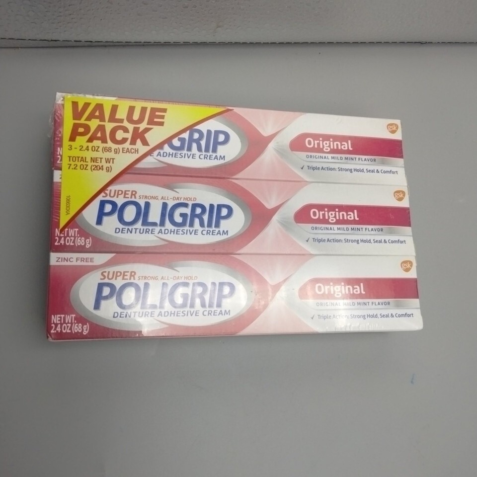 Super Poligrip Denture Adhesive Cream Original Mild Mint Value 3 Pack - SEALED!.