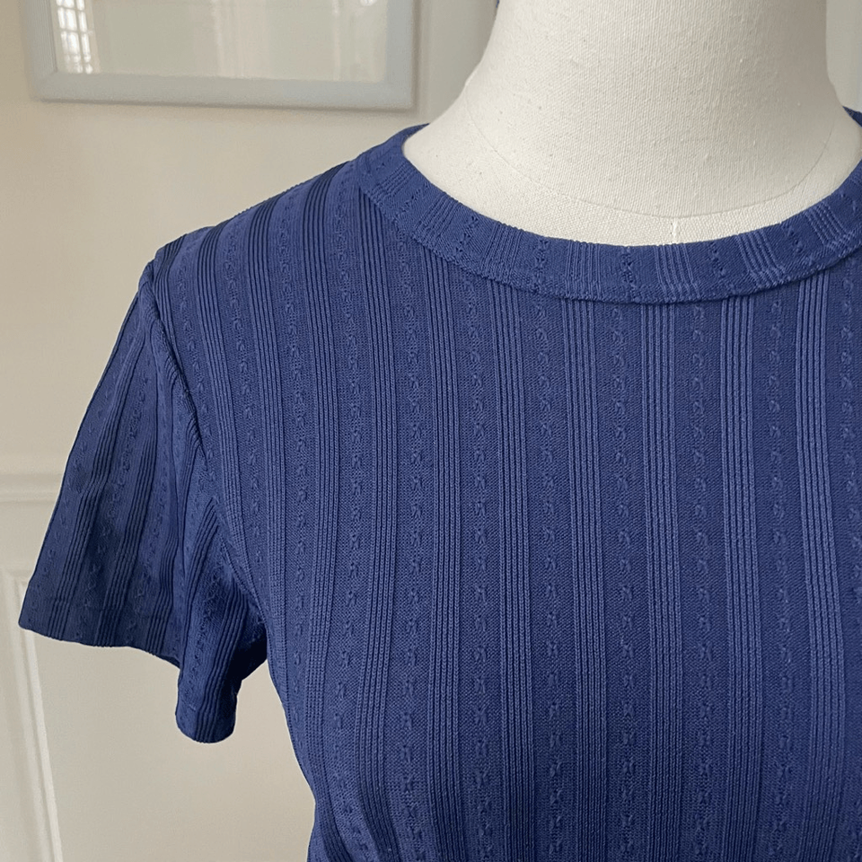 Vintage 2pc Vintage 70s A-Line Mini Skort Navy Short Sleeve Textured Tshirt XS
