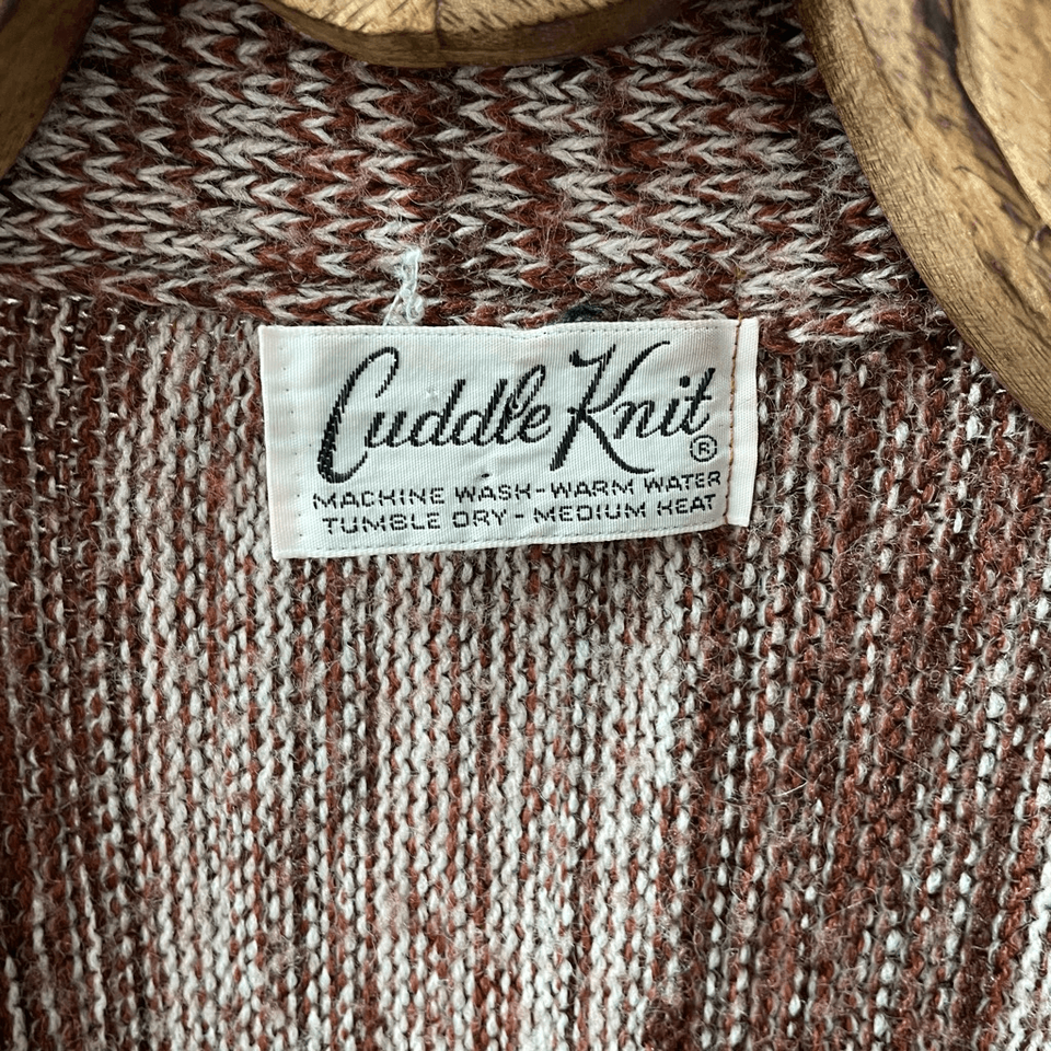 Vintage 70s Cuddle Knits Brown Open Front Cardigan Sweater M