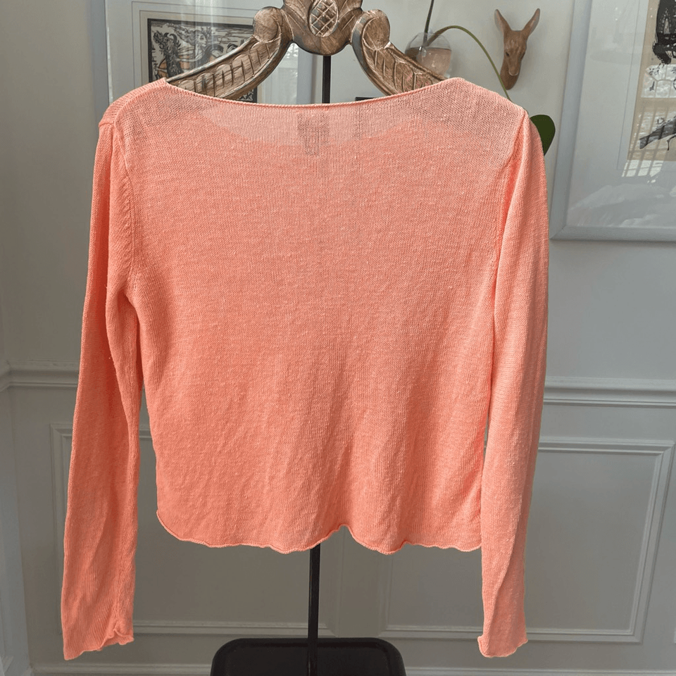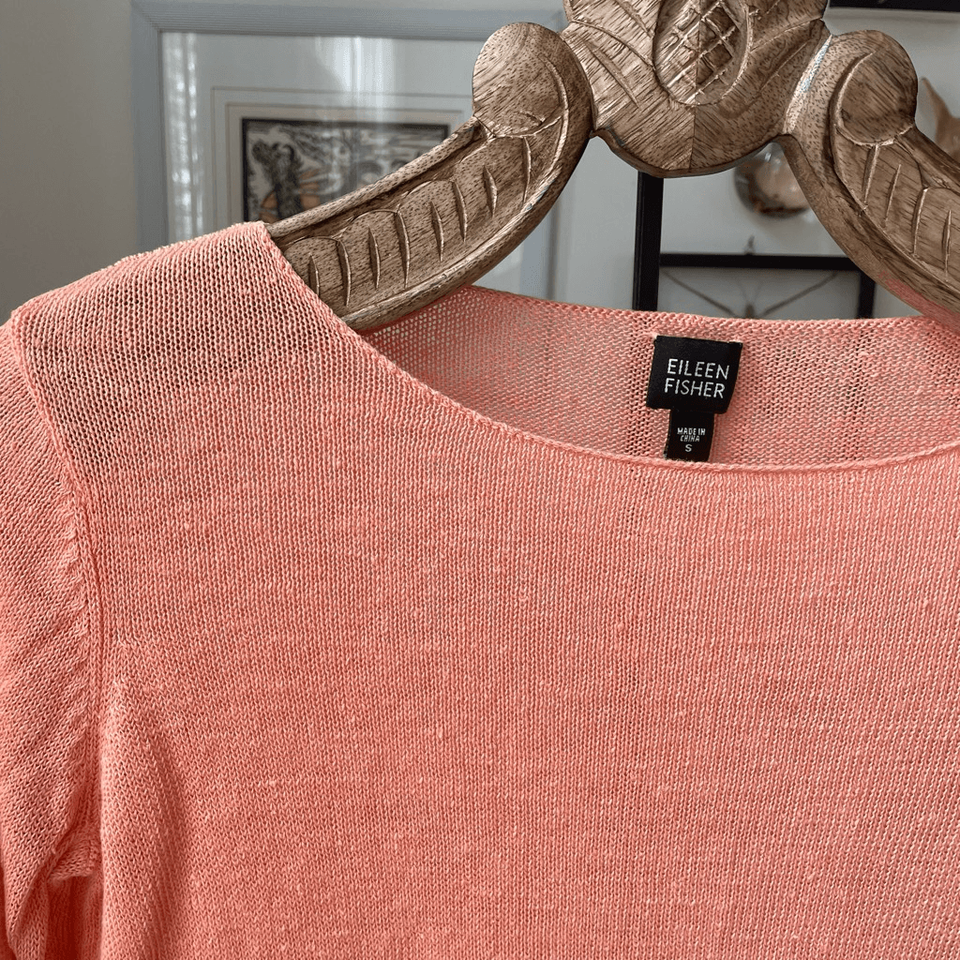 Eileen Fisher Orange Sherbet 100% Linen Knit Top Sweater S