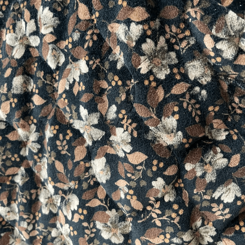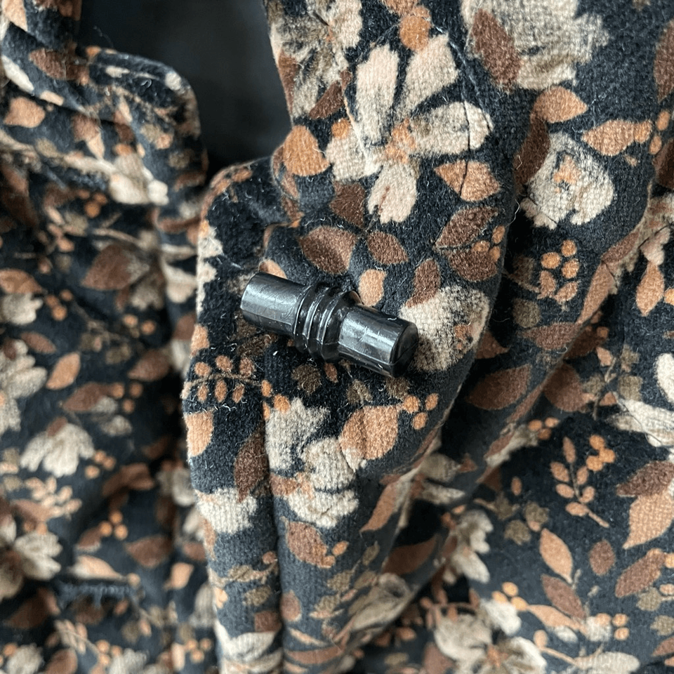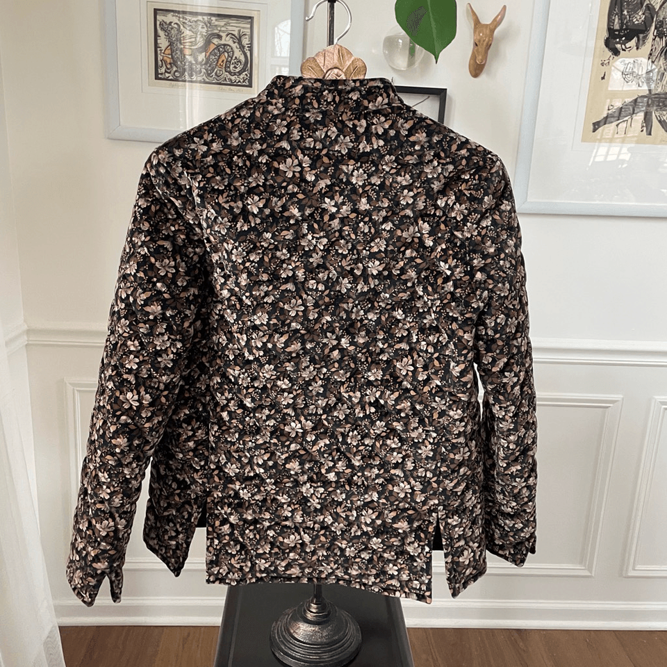 Vintage 70s Cottagecore Quilted Band Collar Jacket Brown Velveteen Floral S