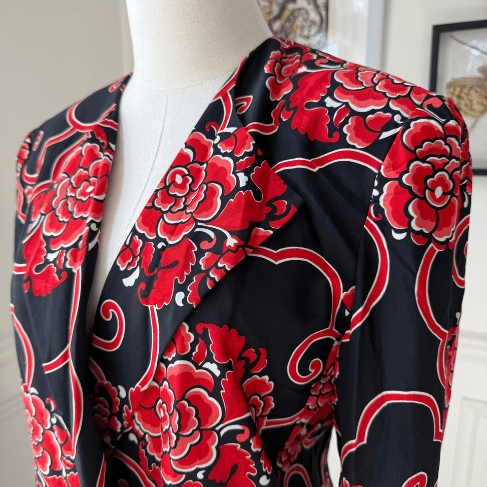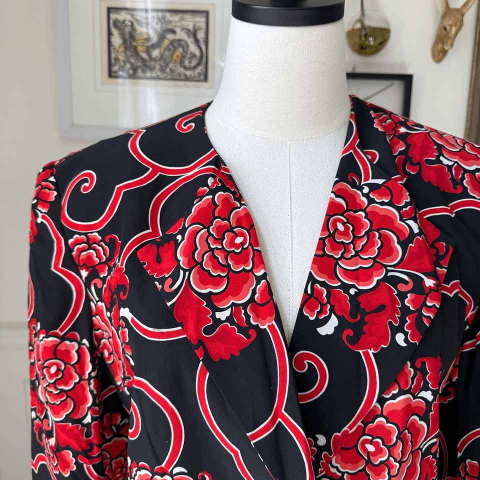 Vintage 80s Gloria Sachs Bergdorf Goodman Silk Red Floral Blazer 8