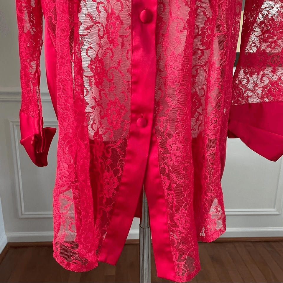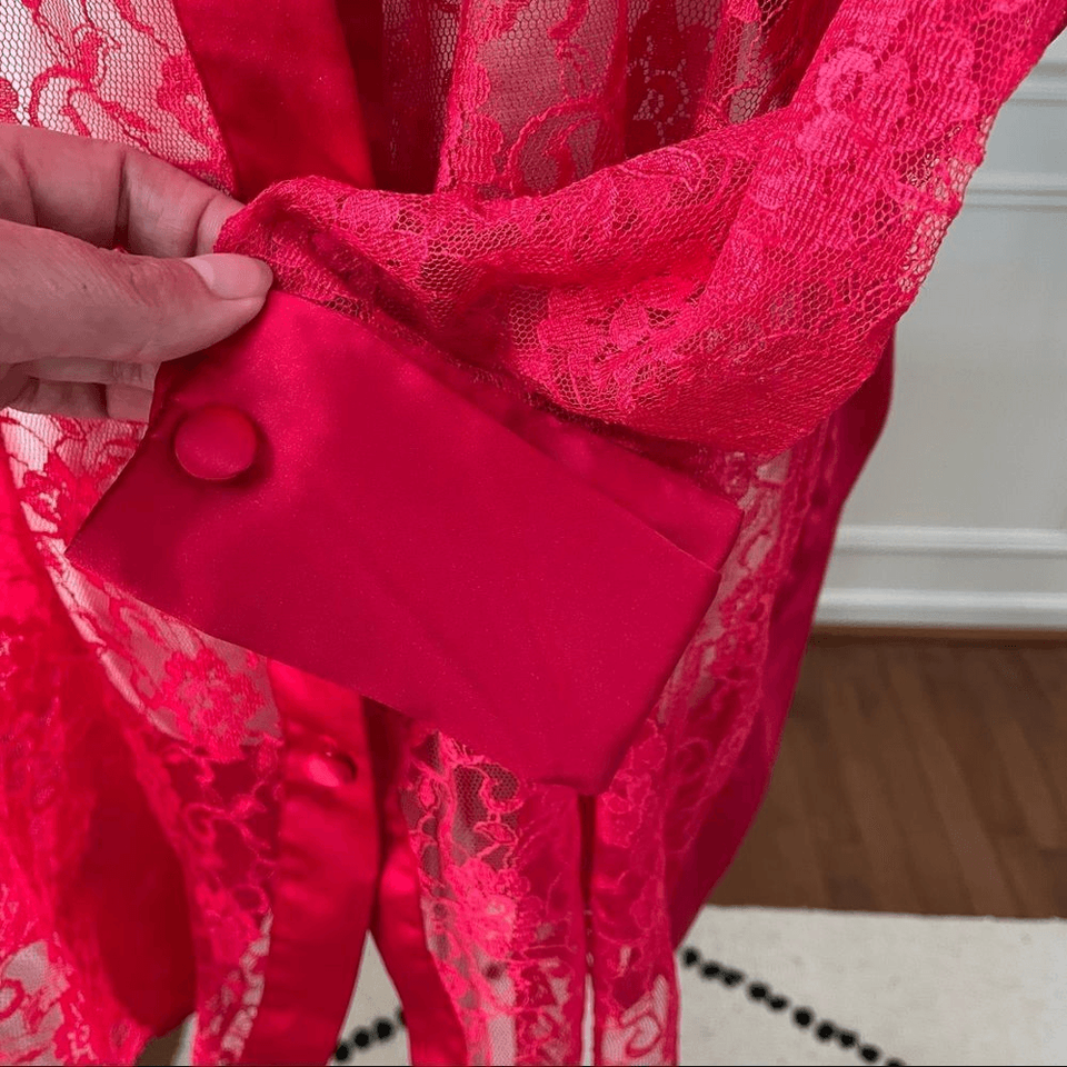 Vintage Gold Label Victoria’s Secret Red Lace Satin Night Shirt Pajamas S