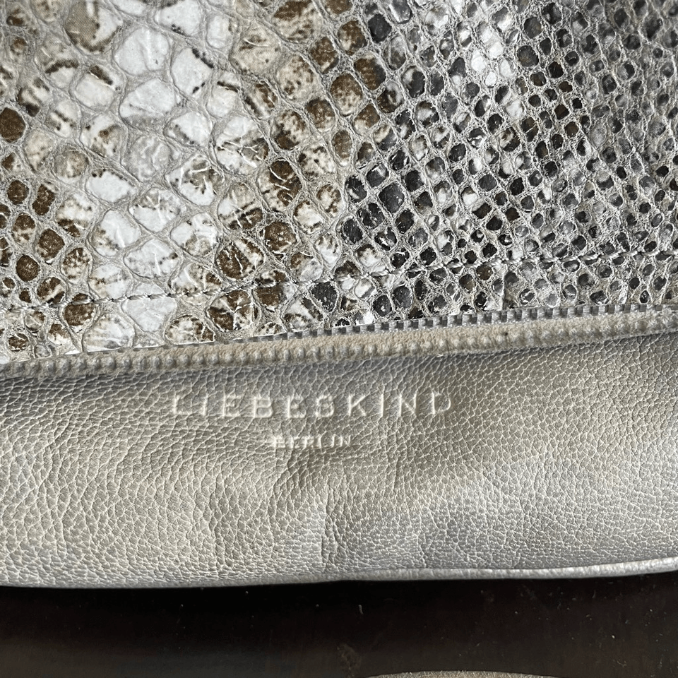 Liebeskind Berlin Nyala Goat Leather Colored Snake Crossbody Purse Bag Grey