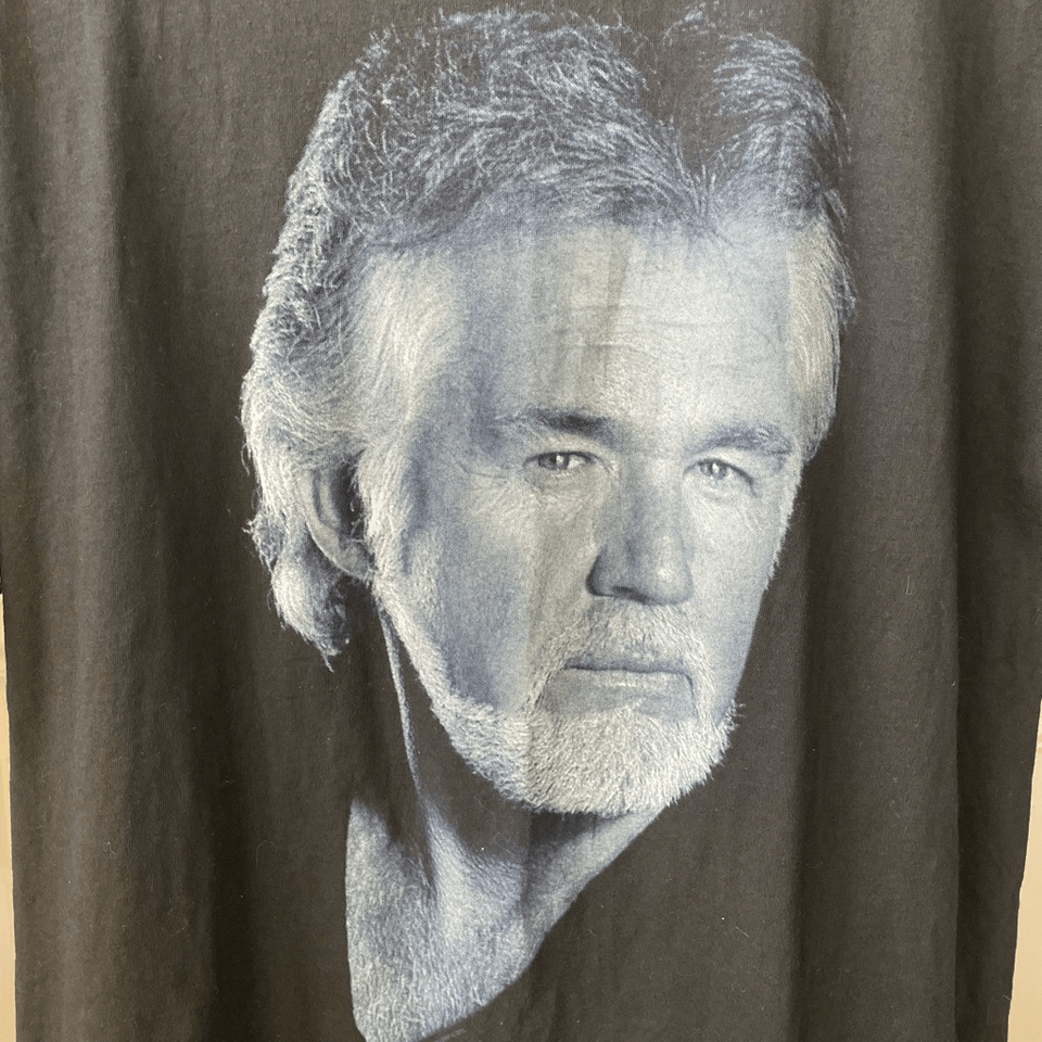 Washed but never worn, Kenny Rogers concert T-shirt from 1994. Features a photographic portrait of Kenny Rogers on the front and Kenny script across the back. The brand of the T-shirt is tulex and it is 100% cotton. Laying flat measures 27 inches shoulder to hand and 22.5 inches armpit to armpit