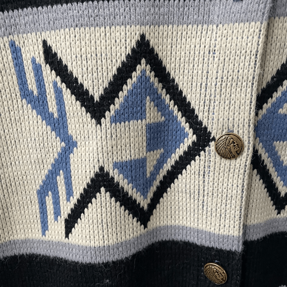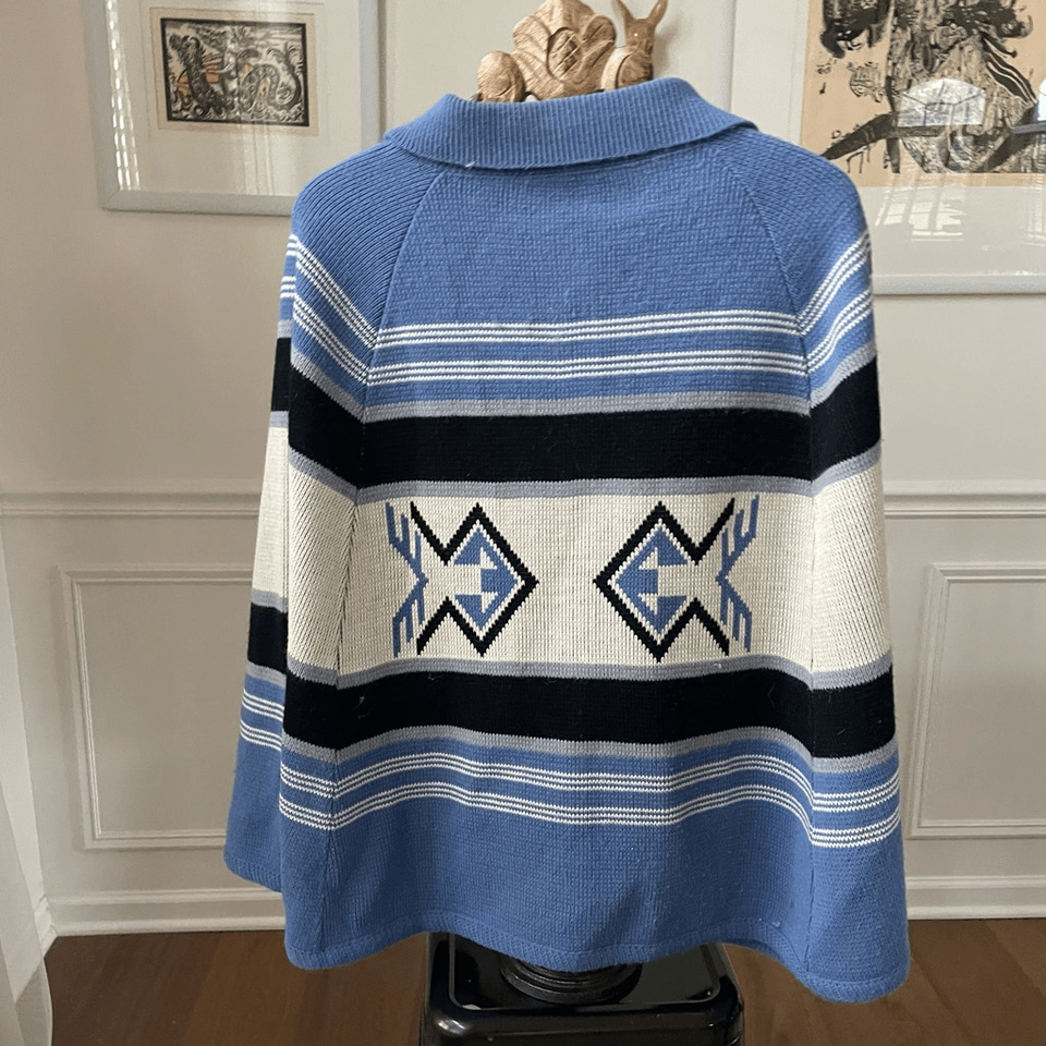 Vintage Southwestern Indian Button Blanket Print Poncho OSFM