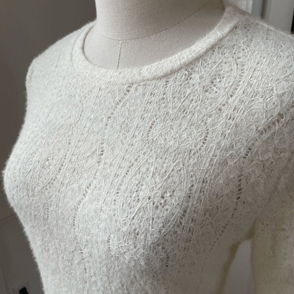 NWT Commense Floral Hollow Knit Crew Neck Long Sleeve Top Ivory L