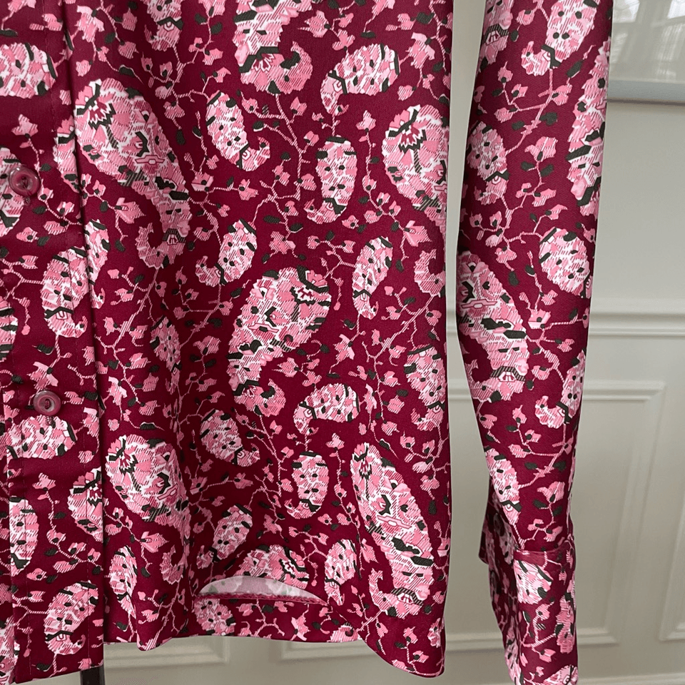 Vintage 70s Sears Perma-Prest Shirt Burgundy Pink Paisley Shirt S