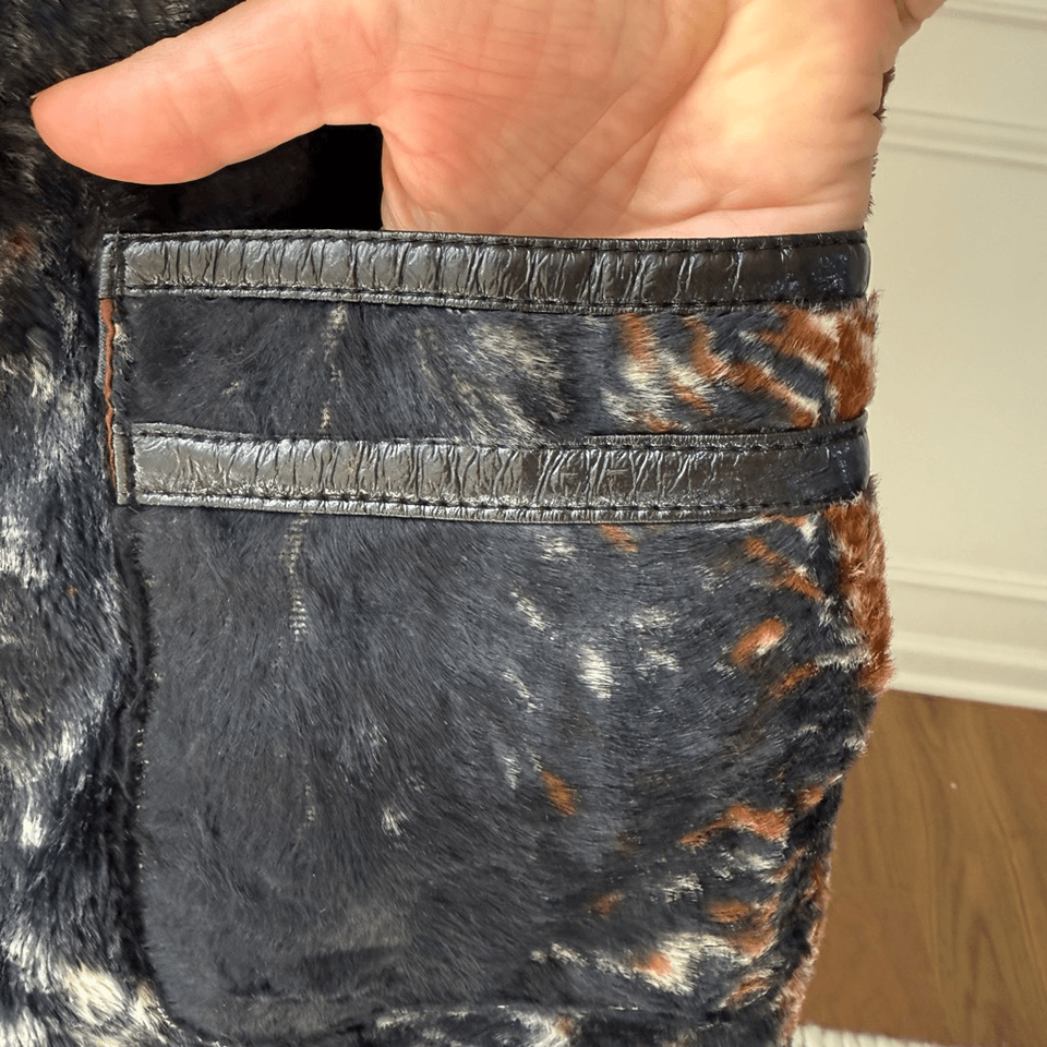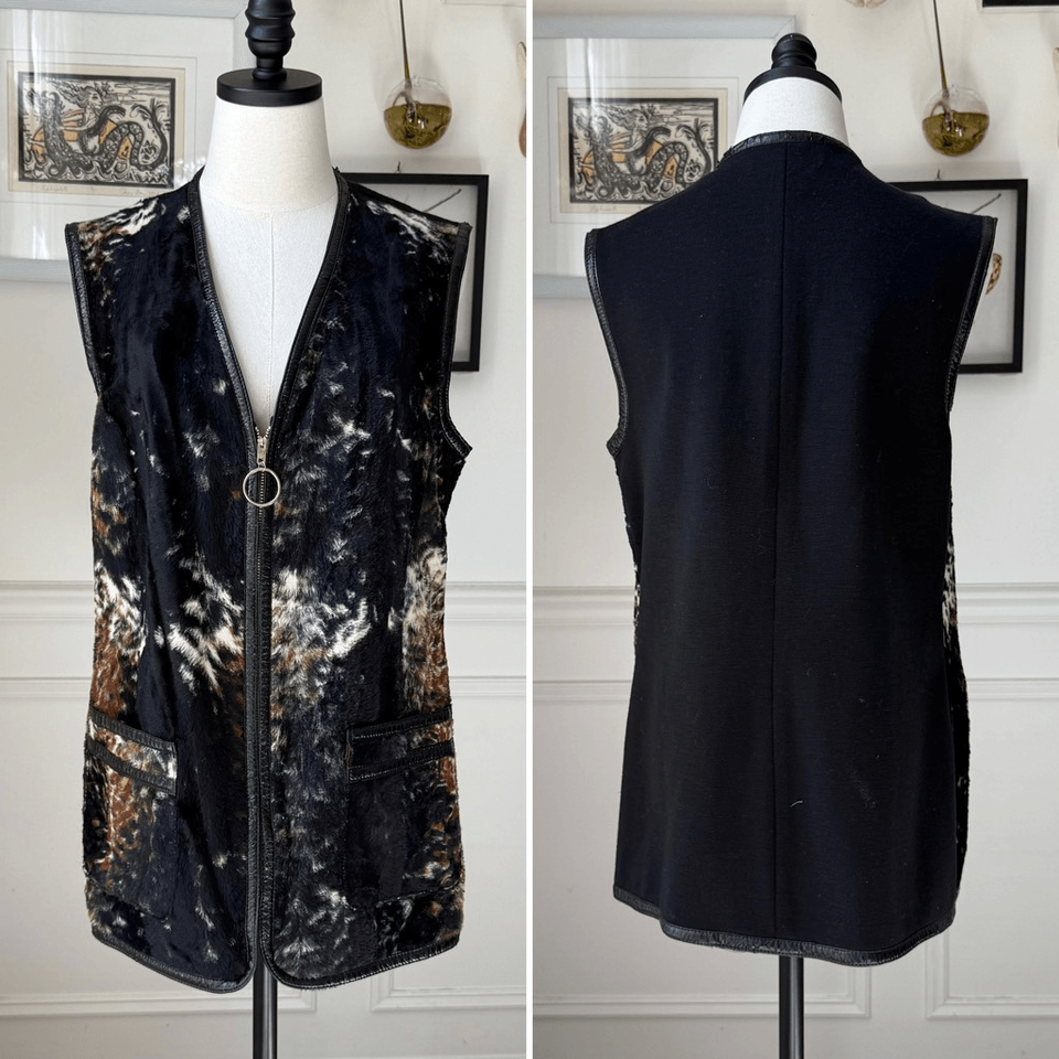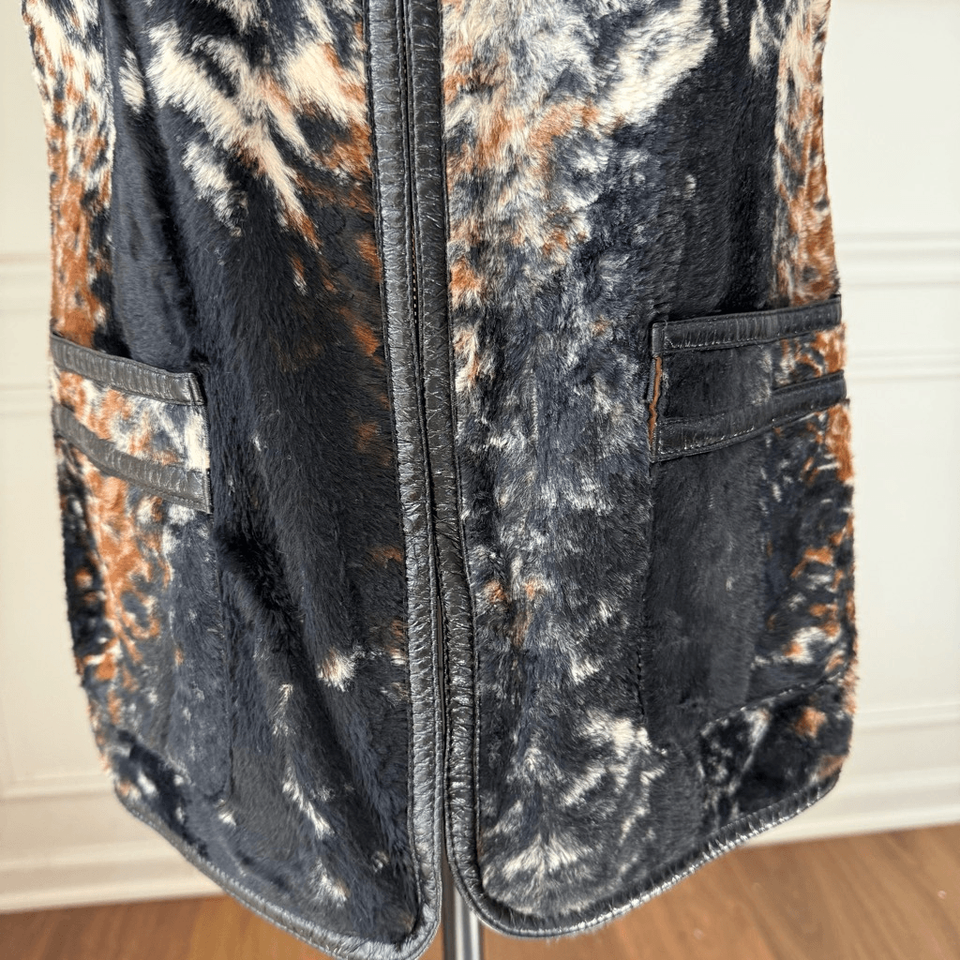 Vintage 70s Carnaby Faux Brindle Fur Longline Zip Vest M L