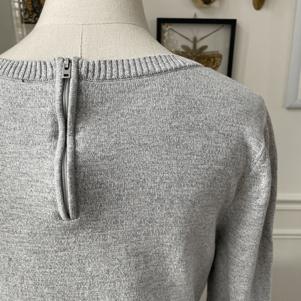 Talbots Grey Tunic Sweater Welt Pockets Back Neck Zip M
