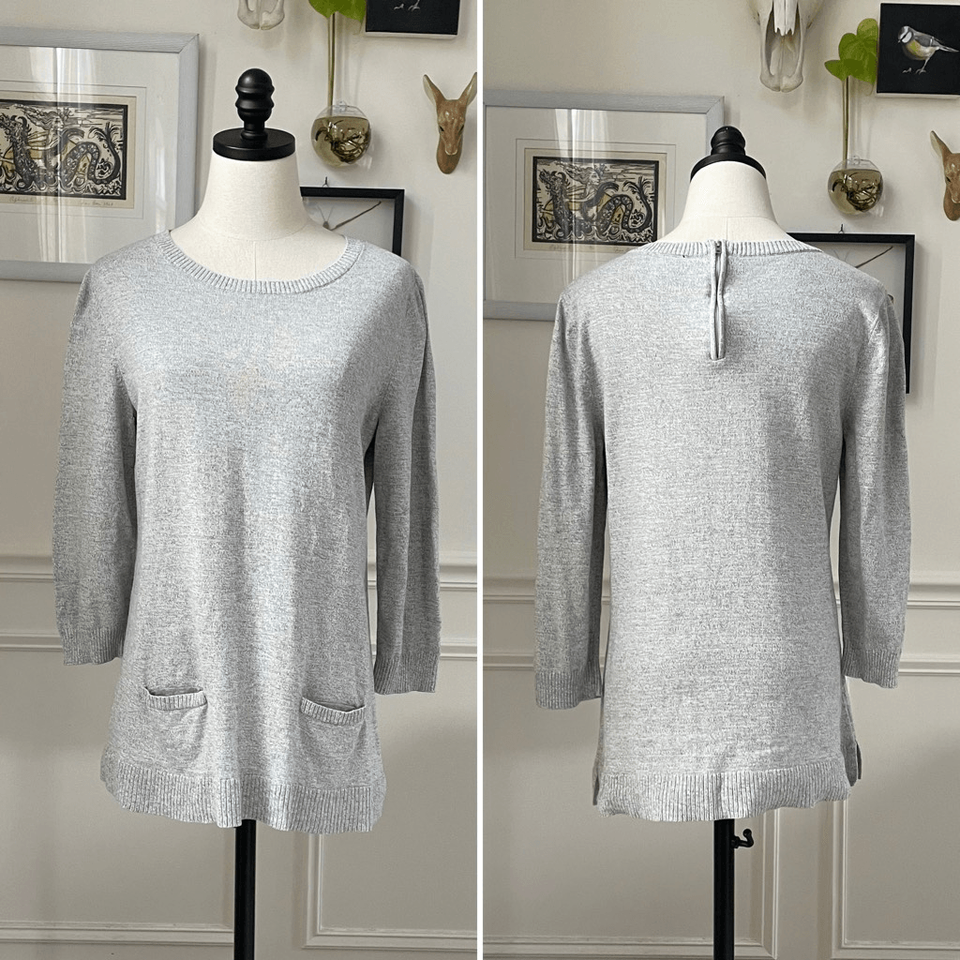 Talbots Grey Tunic Sweater Welt Pockets Back and 50 similar items