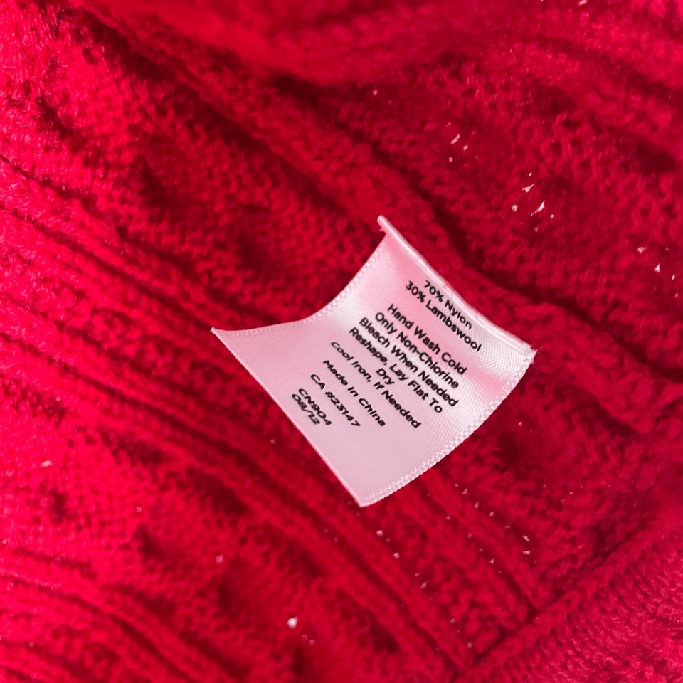 Talbots women?s cable knit open front cardigan sweater with shawl collar in jewel tone red. Super soft lambswool and nylon blend. Laying flat measures 22 inches shoulder to hem and approximately 19 inches armpit to armpit.