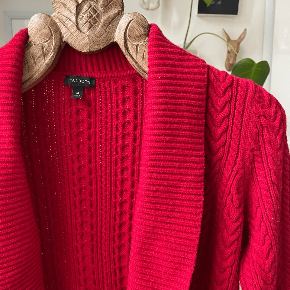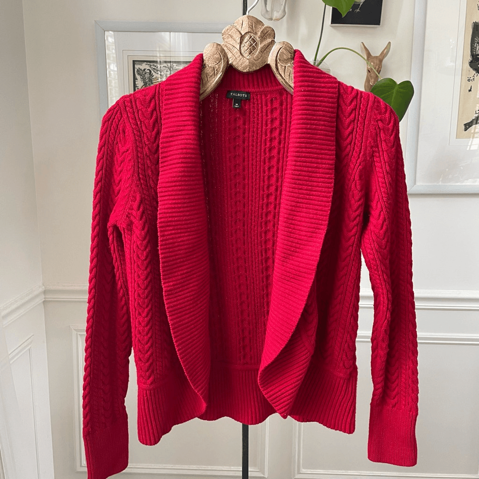 Talbots Garnet Red Cable Knit Open Front and 50 similar items