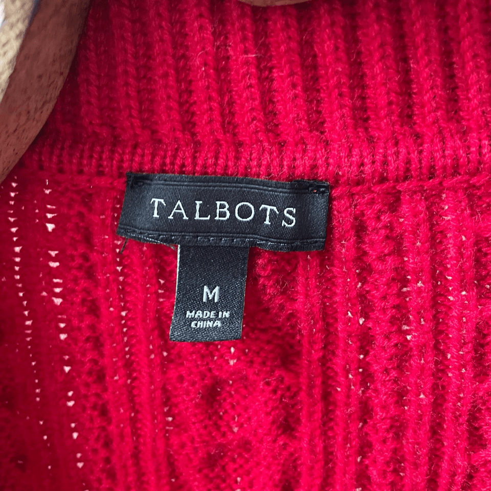 Talbots Garnet Red Cable Knit Open Front Cardigan Sweater M