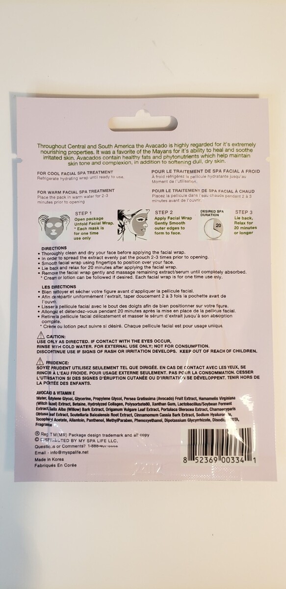 New Sealed Spa Life Face Wrap with Avocado Vitamin E.