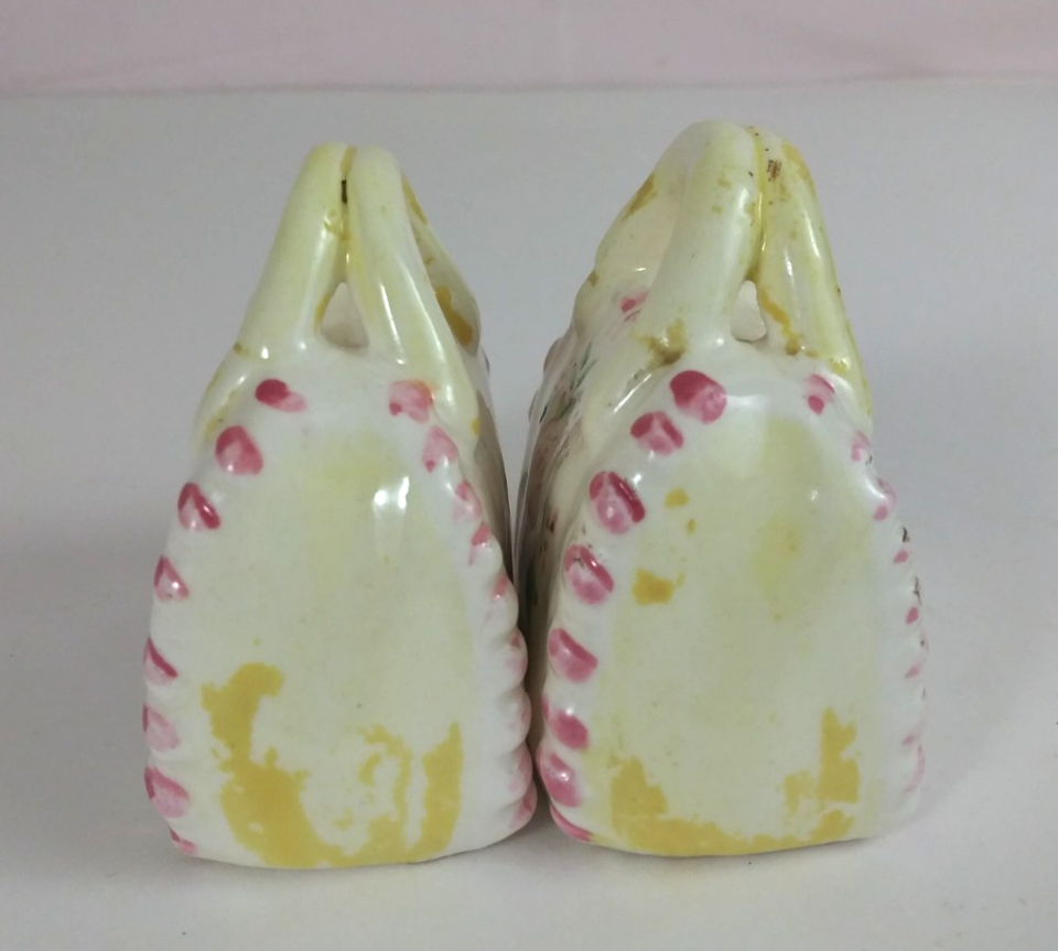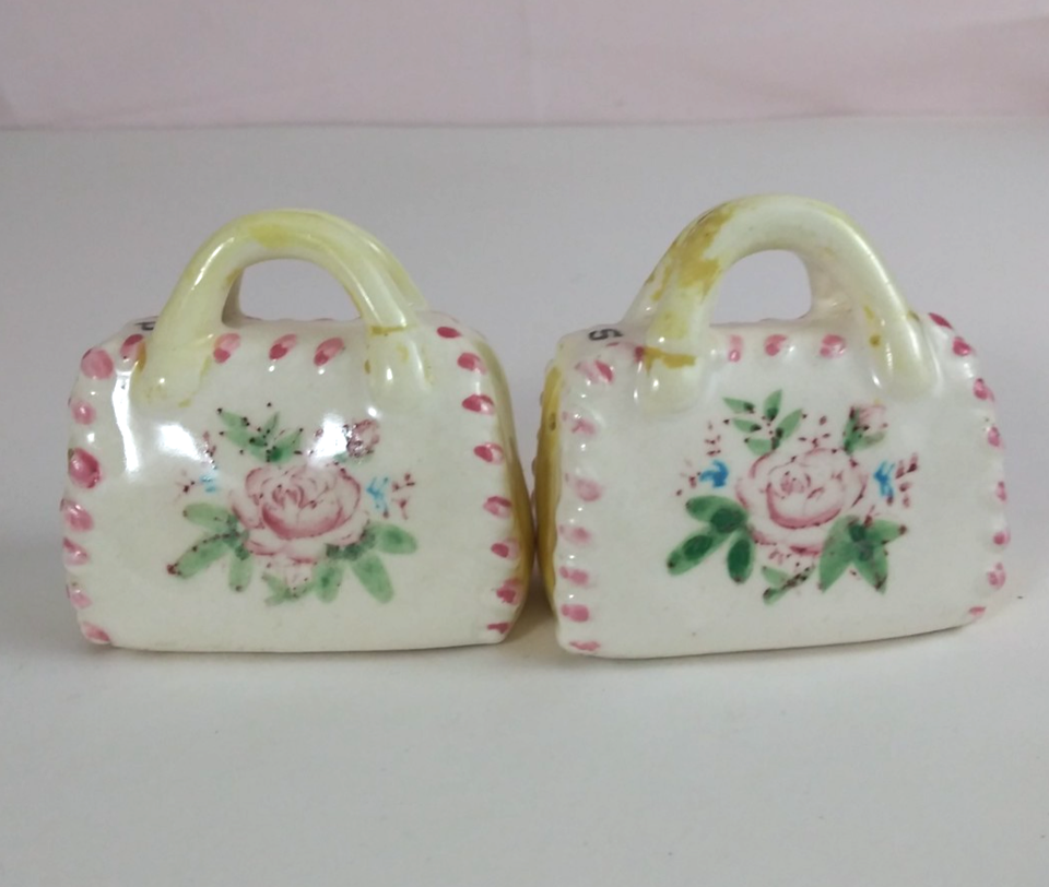 Vintage Rose Floral Purse Handbag Ceramic Salt & Pepper Shakers Japan