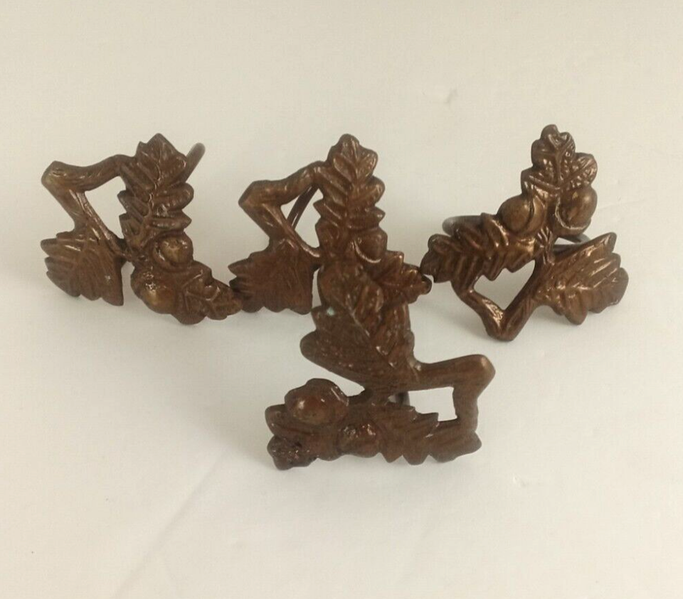 4 Metal Leaf and Acorn Design Napkin Ring Bronze Finish