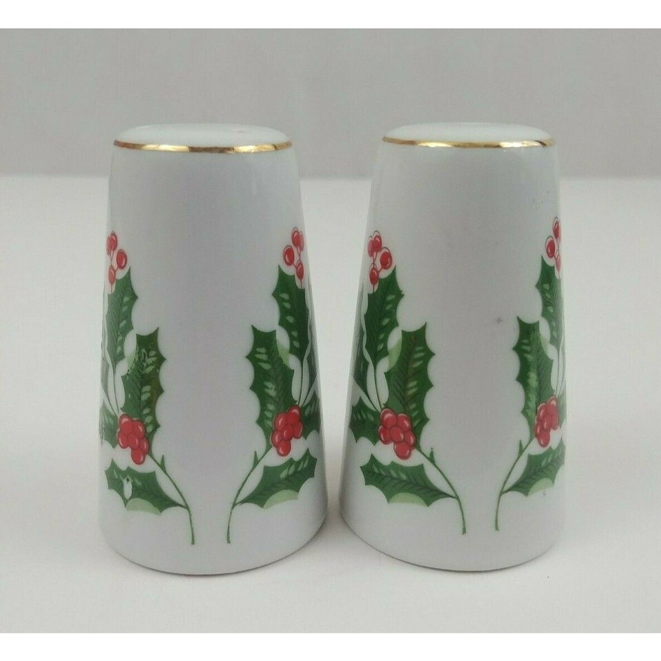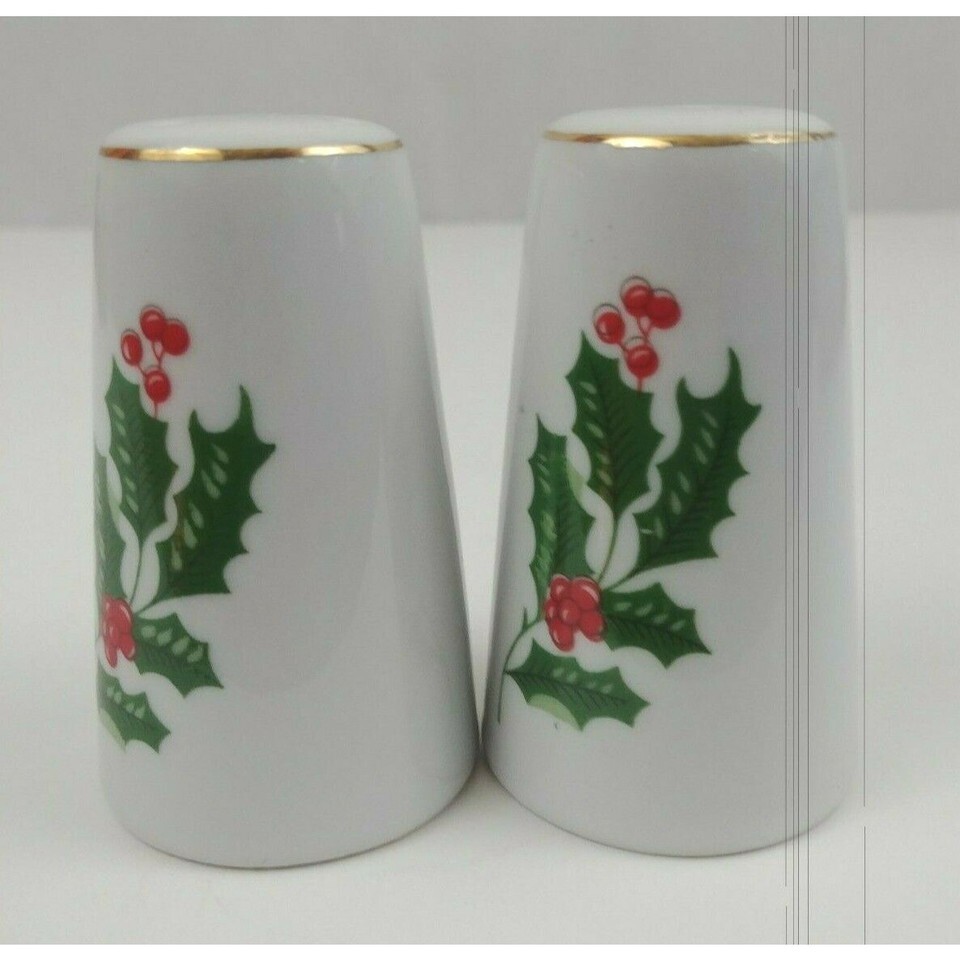 Vintage Christmas Mistletoe White Salt & Pepper Shakers Set