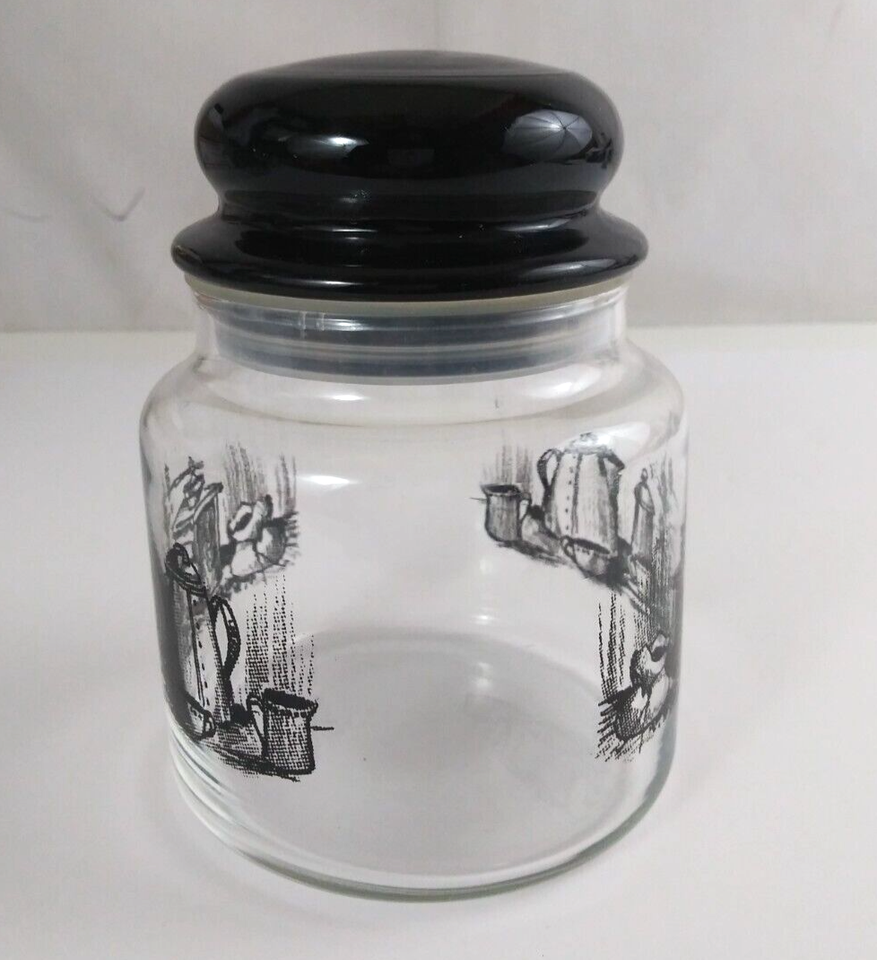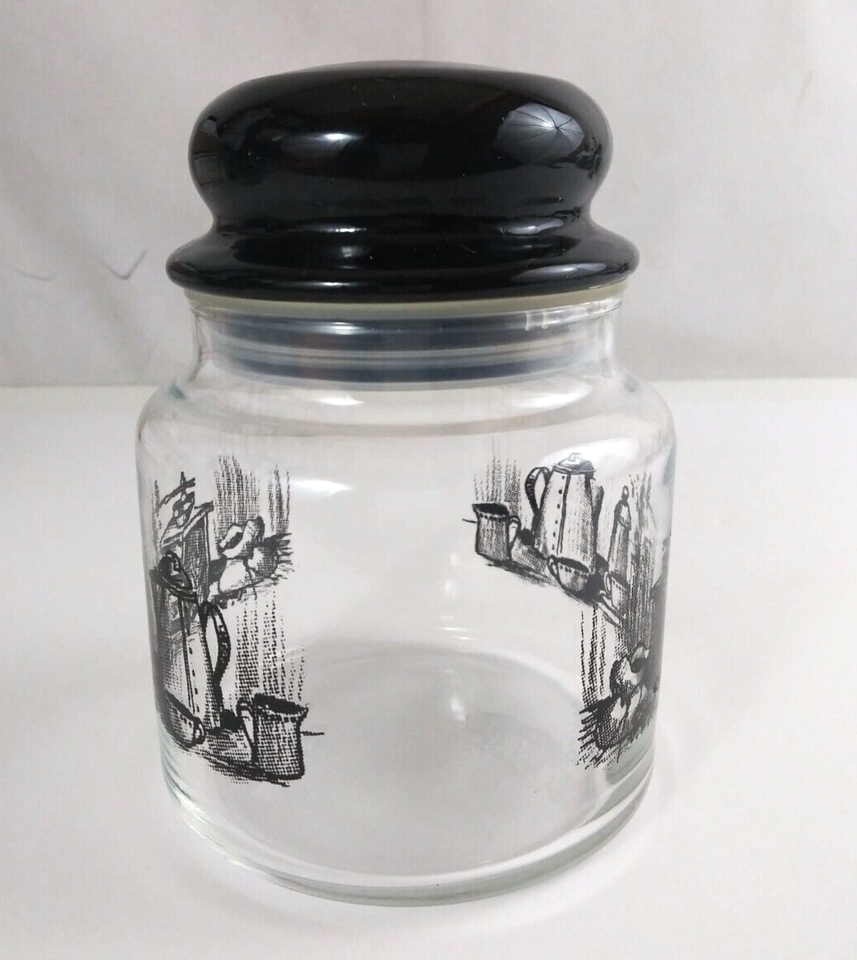 Vintage 70’s Kitchen Coffee Design 5.5" Glass Jar With Lid