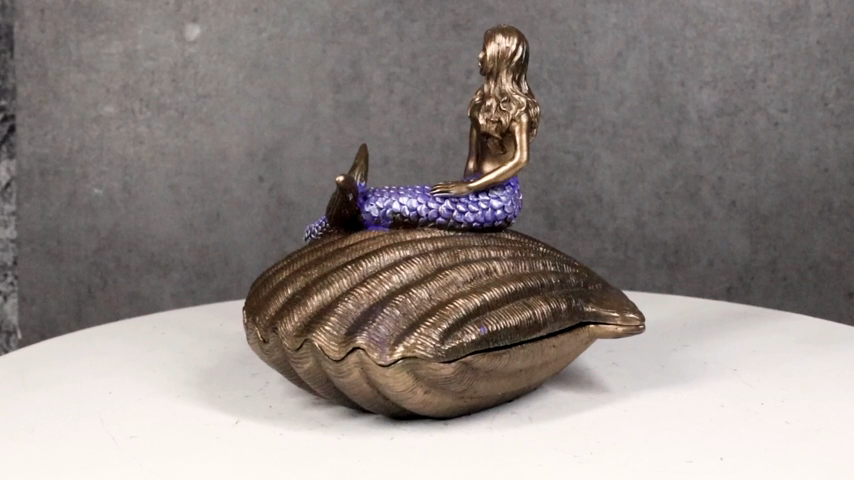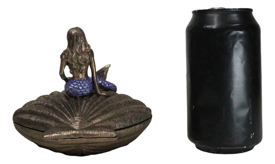 Beautiful Mermaid Sitting On Giant Sea Shell Decorative Jewelry Box Figurine