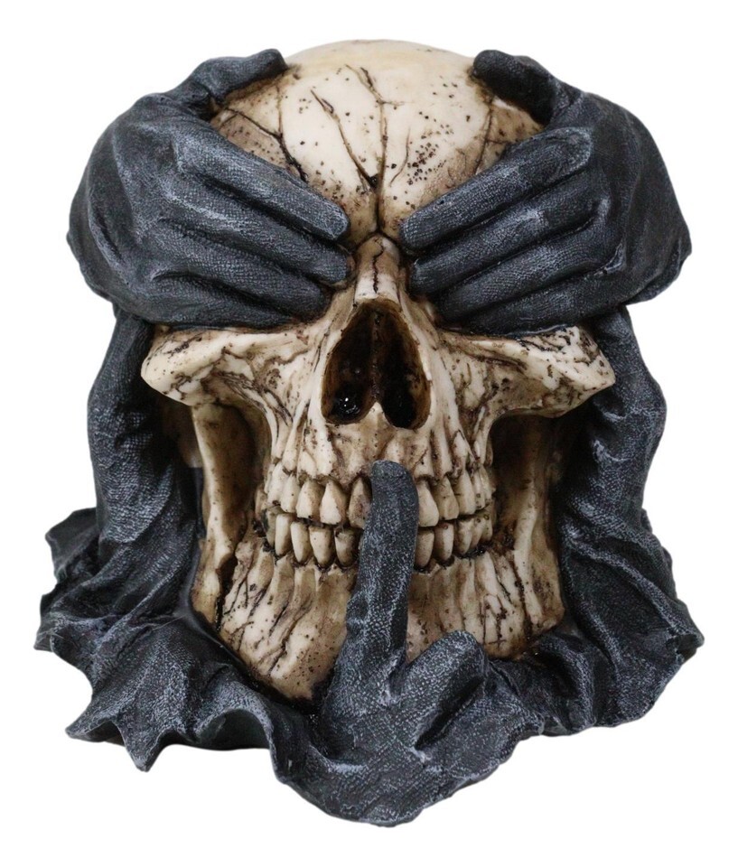 See Hear Speak No Evil Skull Deathly Gallows Gothic Grim Pantomime Figurine