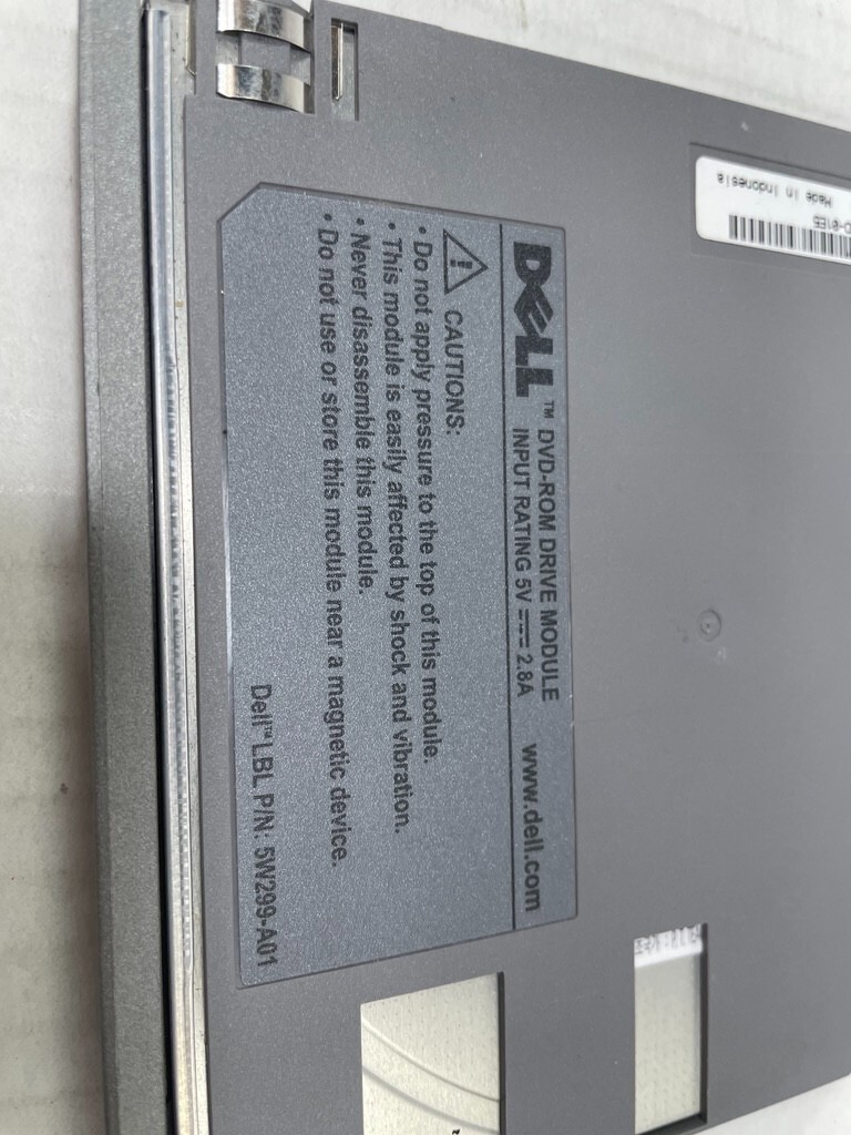 This is a Gray Genuine Dell D-Series 8x DVD-Rom Notebook IDE Drive. Its part number is 5W299-A01. This drive has 8x maximum DVD read speed. It has a slimline design, an eject button, an emergency eject hole, and it easily connects to your notebook's DVD-ROM IDE Connector. These drives were pulled from off lease systems, tested to verify functionality and repackaged for individual sale. We are selling them as pictured without any additional parts, accessories or software.