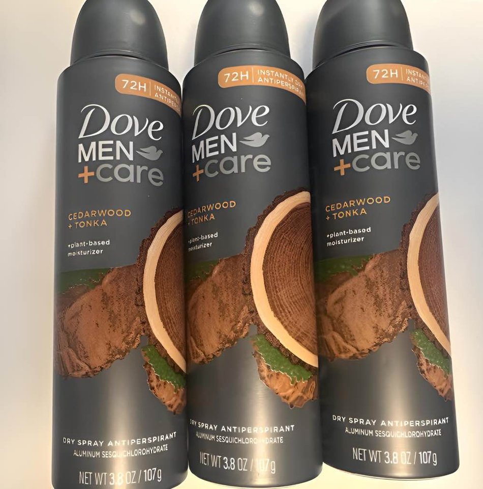 DOVE MEN + CARE DRY SPRAY ANTIPERSPIRANT DEODORANT CEDARWOOD + TONKA 3 PACK NEW