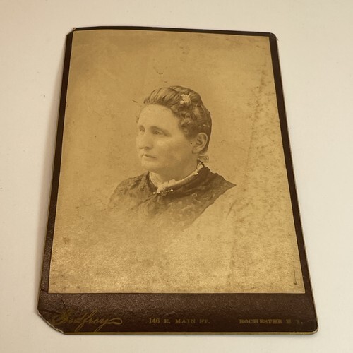 Paper is yellowing. Stamped "Godfrey 146 E Main St Rochester NY" on the bottom. Picture depicts a portrait of a woman. Please see pictures for condition details and measurements.