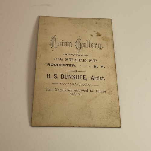 Beautiful lot of 4 wallet size cabinet card. One is not marked on the back, so we have no idea who the artist or photographer is. Two of them are marked "L.L. Lehnkering Rochester N.Y.". One is marked "Union Gallery 68 1/2 State St. Rochester NY H.S. Dunshee, Artist". Paper is yellowing and spotting due to age and storage. Wear and tear, particularly around the corners and edges. Please see pictures for condition details and measurements.
