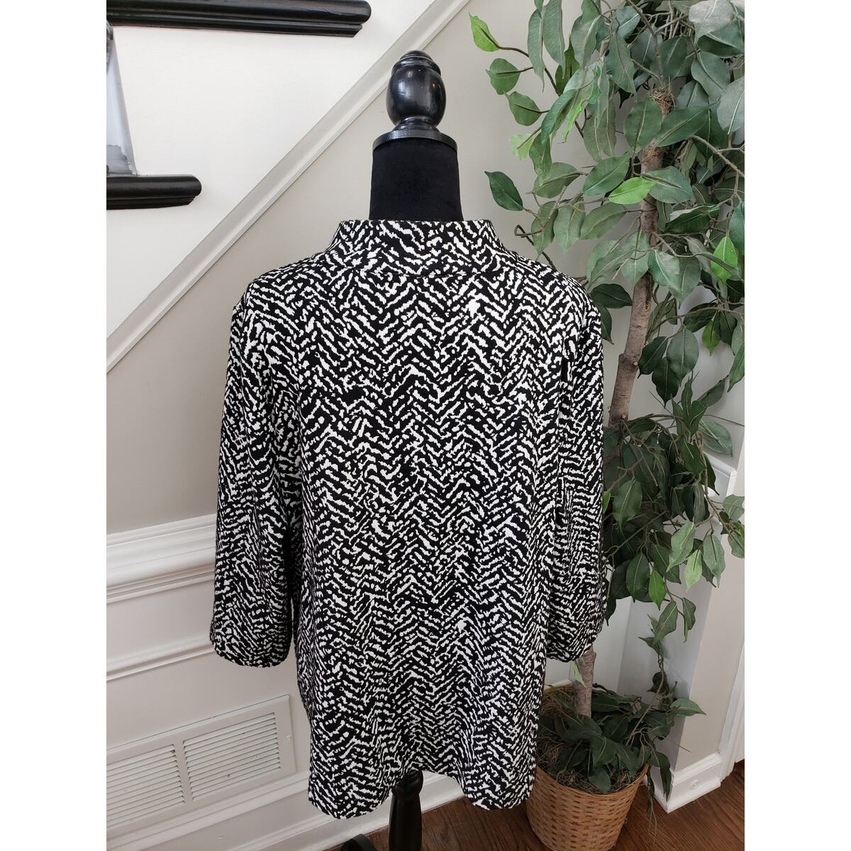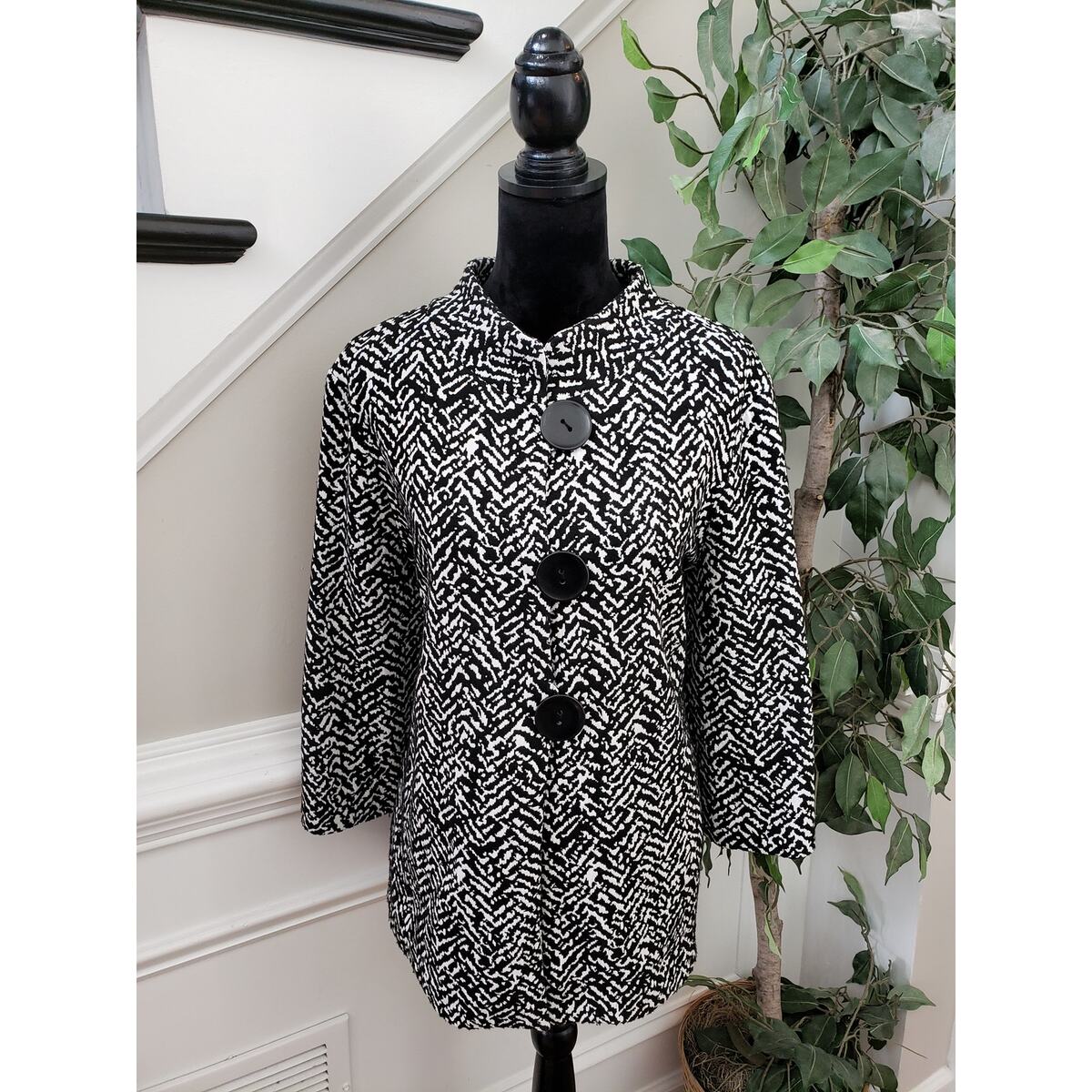 JM Collection Black White Jacket Women L Bold Print 3 Button Midweight Coat