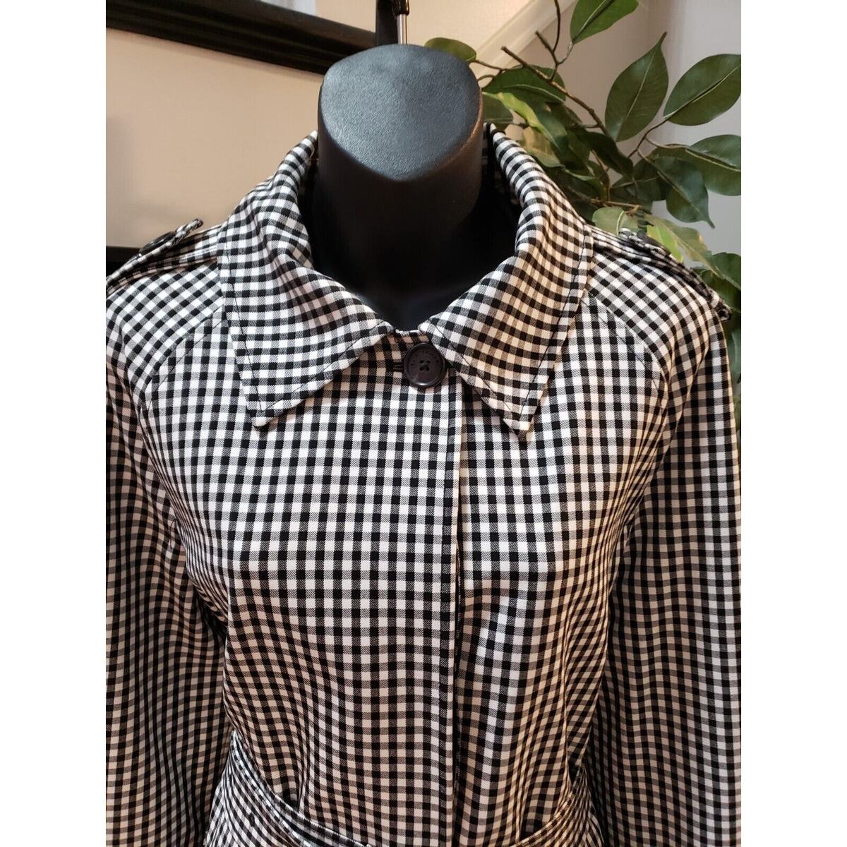 Elie Tahari Womens White Check Polyester Belted Lagoon Trench Coat Jacket Medium