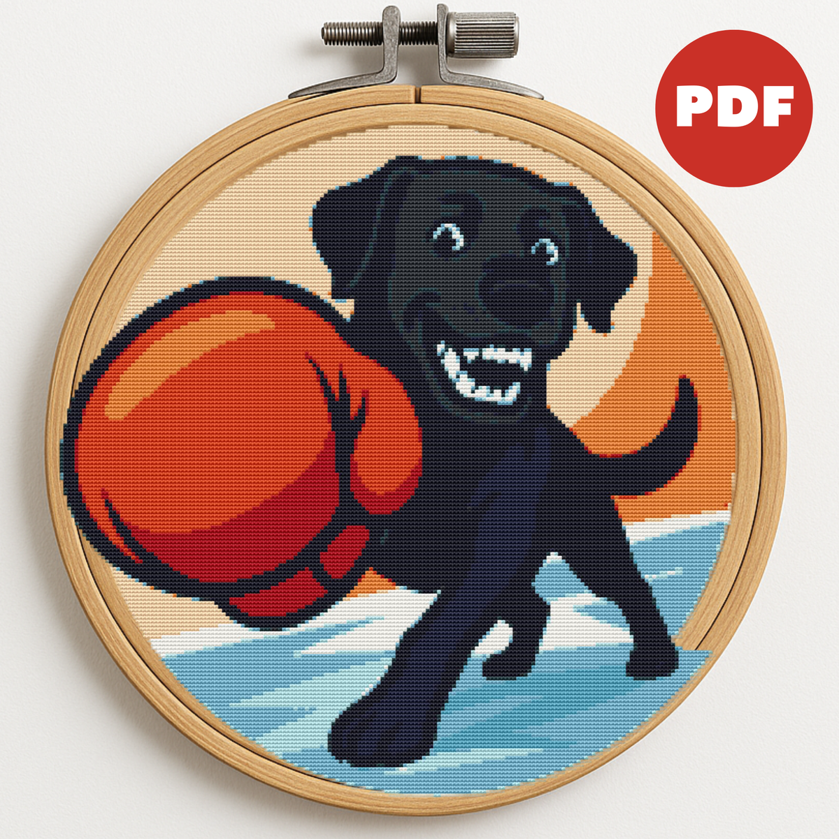 A dog wearing boxing gloves - Cross-stitch pattern PDF, Instant download
