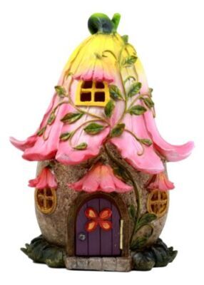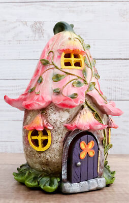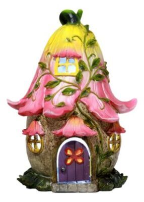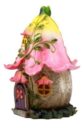 ? We have all the accessories you need to breathe your imagination to life! This is a cozy trumpet lily cottage house in the enchanted gardens. Pair this house with other accessories like various cottage houses, fairy miniatures, gnome miniatures and other enchanted creatures sold in our store. This house has a special LED light feature to it as well as a moving door to display mini fairies living in the home. It will make a great night light decor in your fairy garden setup.