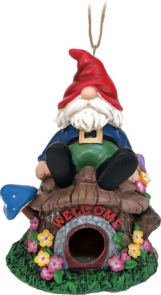 Gnome 10129 Sitting on Hut Weather Resistant Indoor Outdoor Birdhouse 9” H