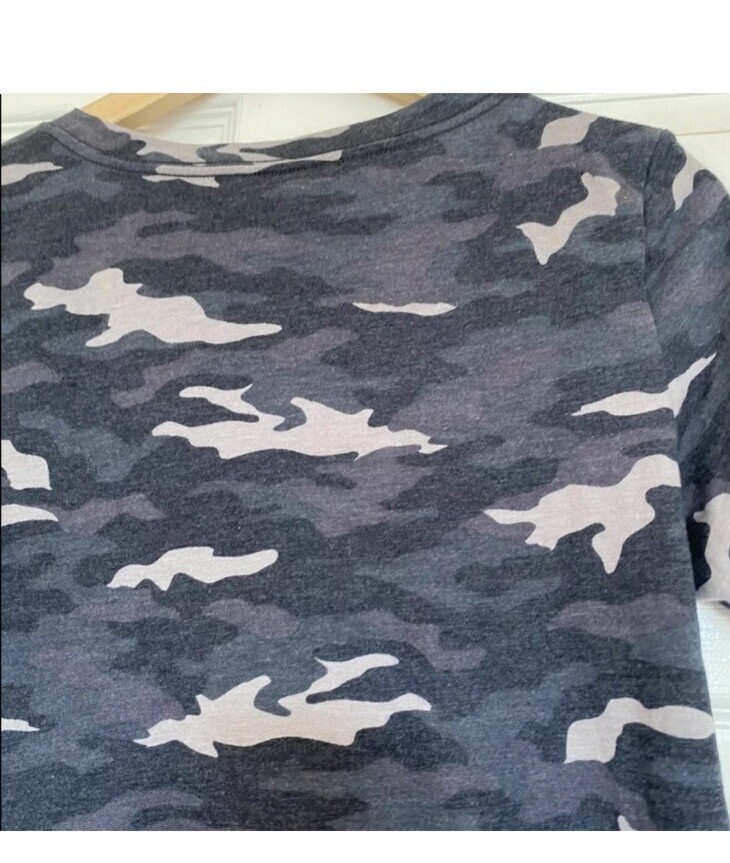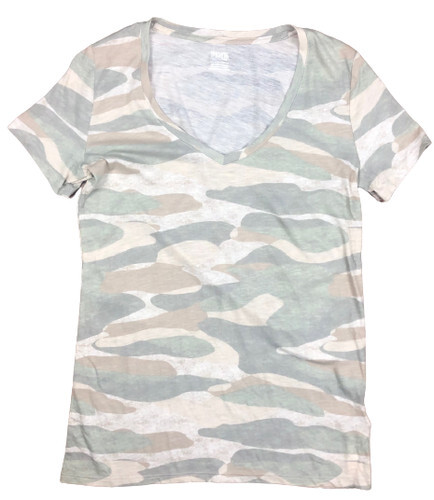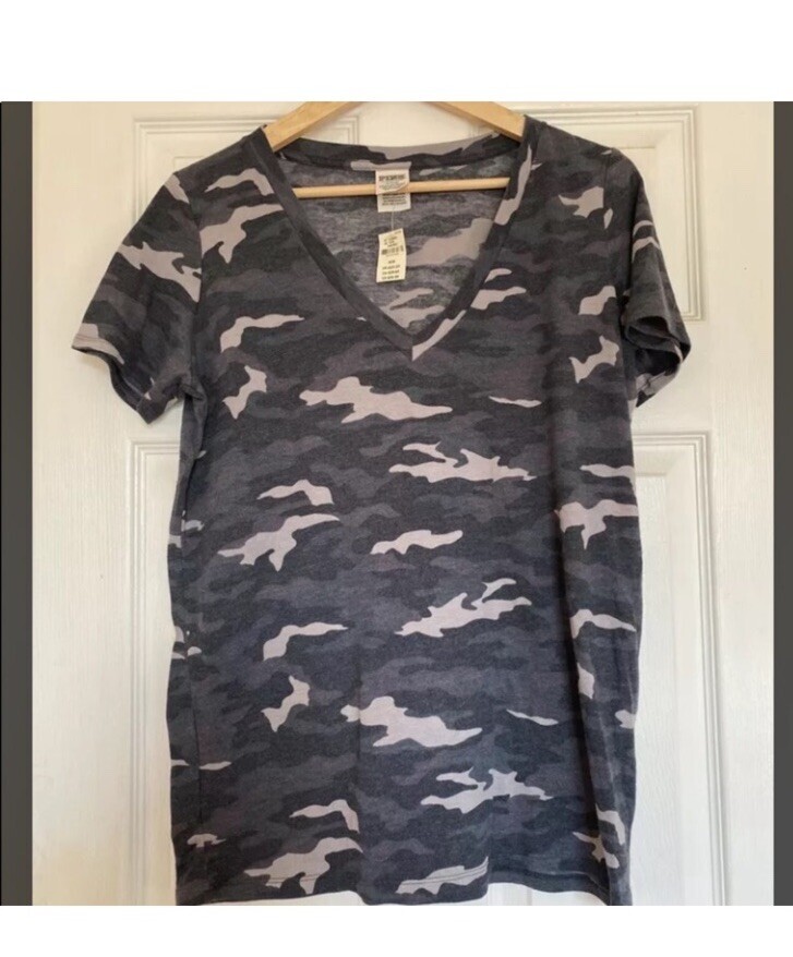 VICTORIAs SECRET PINK Perfect Relaxed Fit Tee V Neck Shirt Gray Heather CAMO NWT