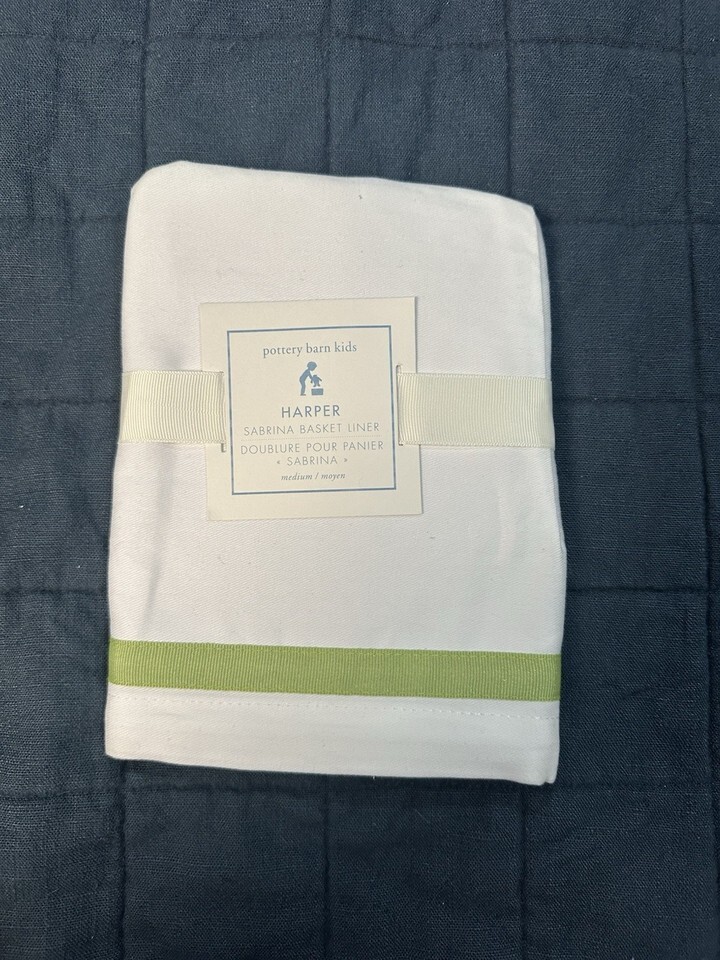 NWT Pottery Barn Kids Sabrina Basket Liner Harper M White with Green Trim PBK. Condition is New. Shipped with USPS Ground Advantage.