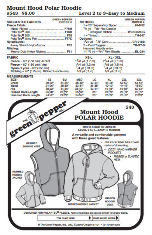 Adult Mount Hood Polar Hoodie Vest Jacket Coat #543 Sewing Pattern Only -- gp543