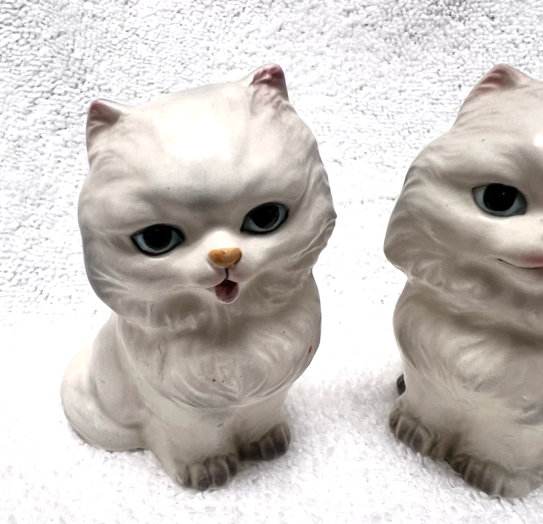 White Fluffy Fat Kitten Cat Salt pepper Shakers 3" Japan Vintage Great Shape