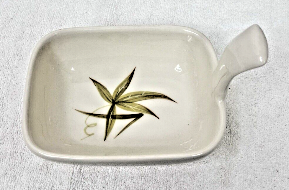 WINFIELD Chowder Bowl MCM Pottery Green Leaf Design Great Shape Bamboo?