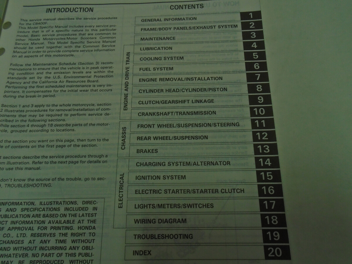 Full of information and illustrations, step by step instructions, assembly/disassembly, exploded illustrations/diagrams/troubleshooting, great manual to have when owning/servicing a HONDA and will be a great aid to keep your BIKE on the road. These manuals will save you money in repairs/service. A must have if you own one of these vehicles.