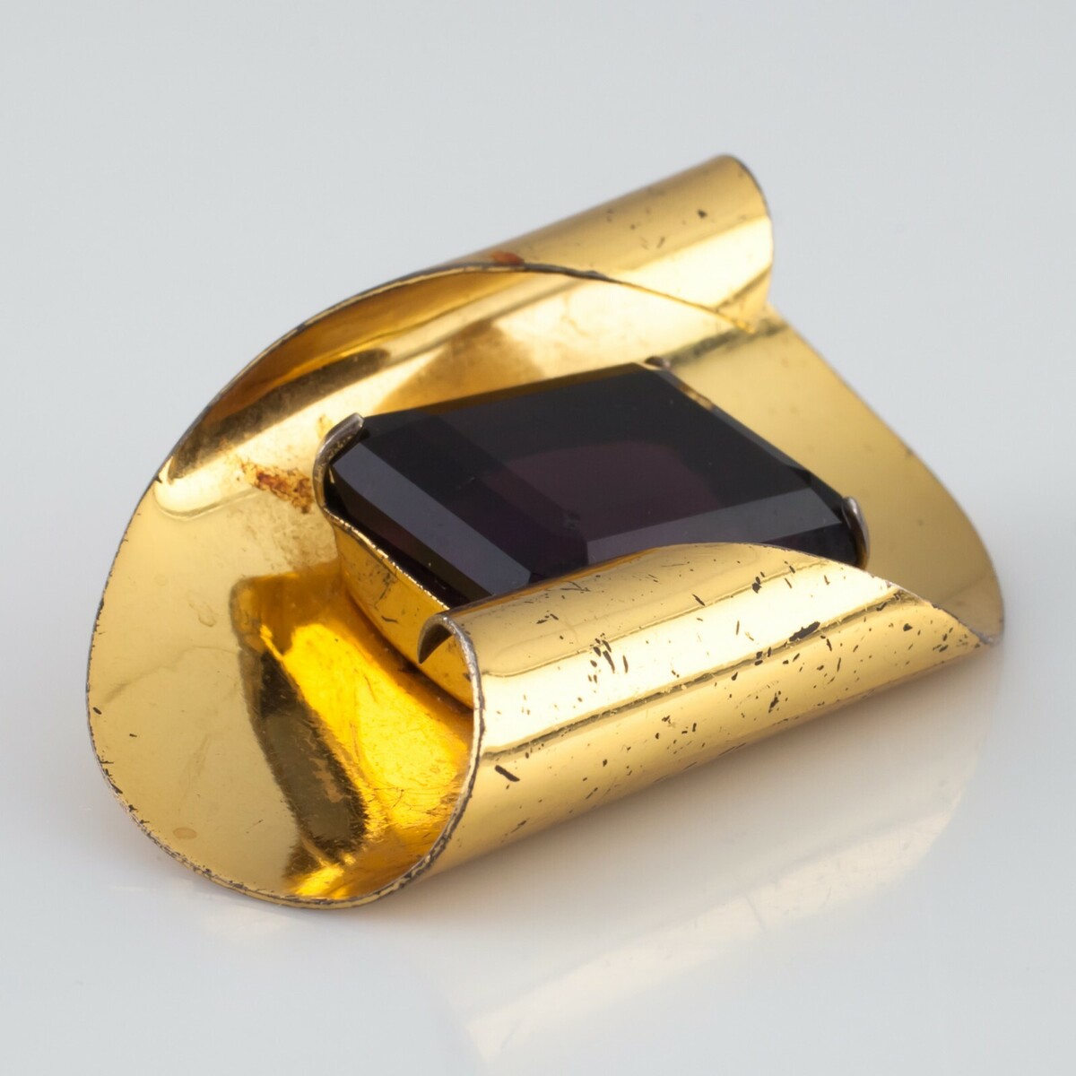 Coro Vermeil Modernist Sterling Silver Gold Plated Brooch w/ Quartz Accent